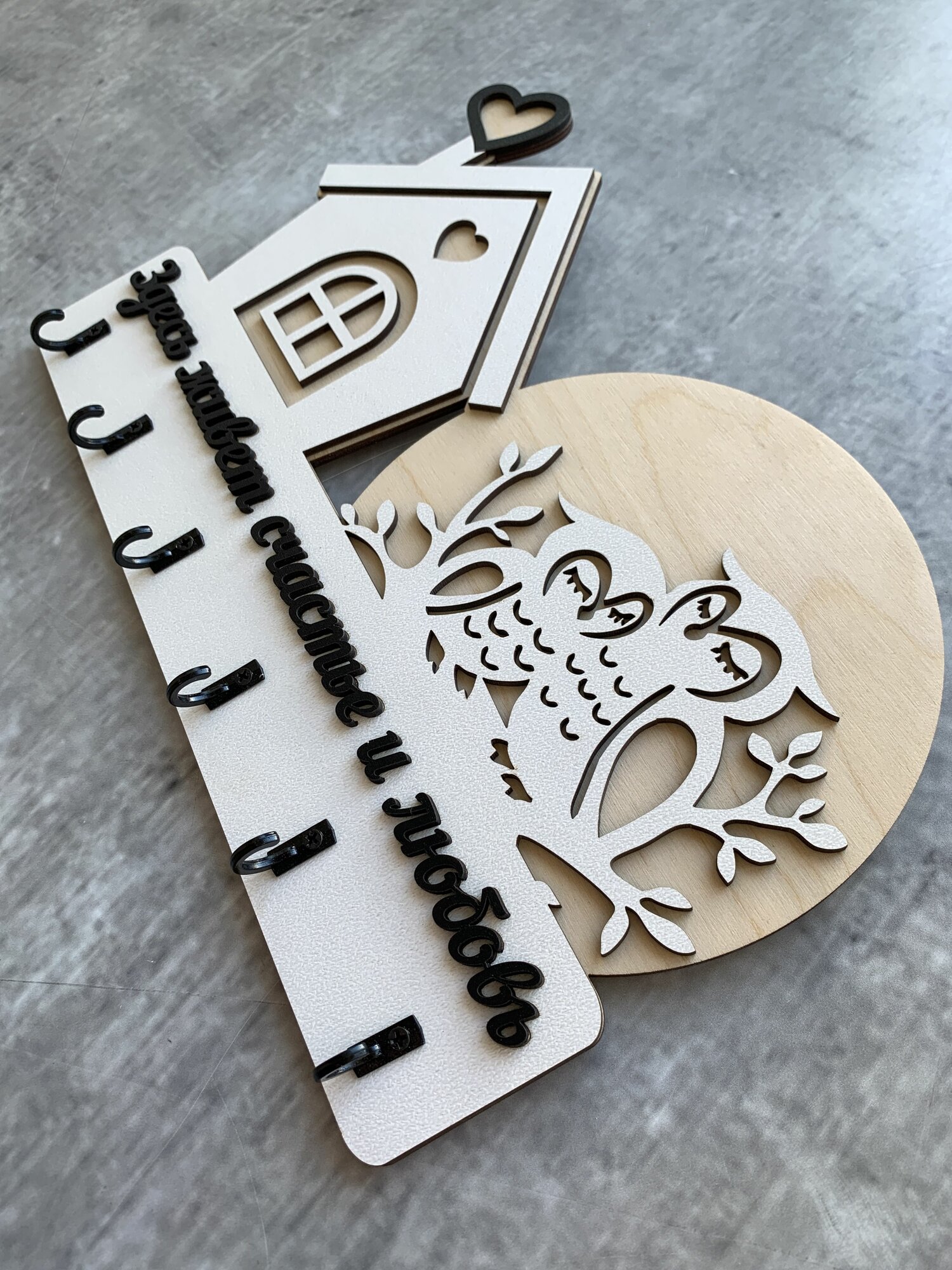 Ключница настенная "Домик с совами черный" Home Decor