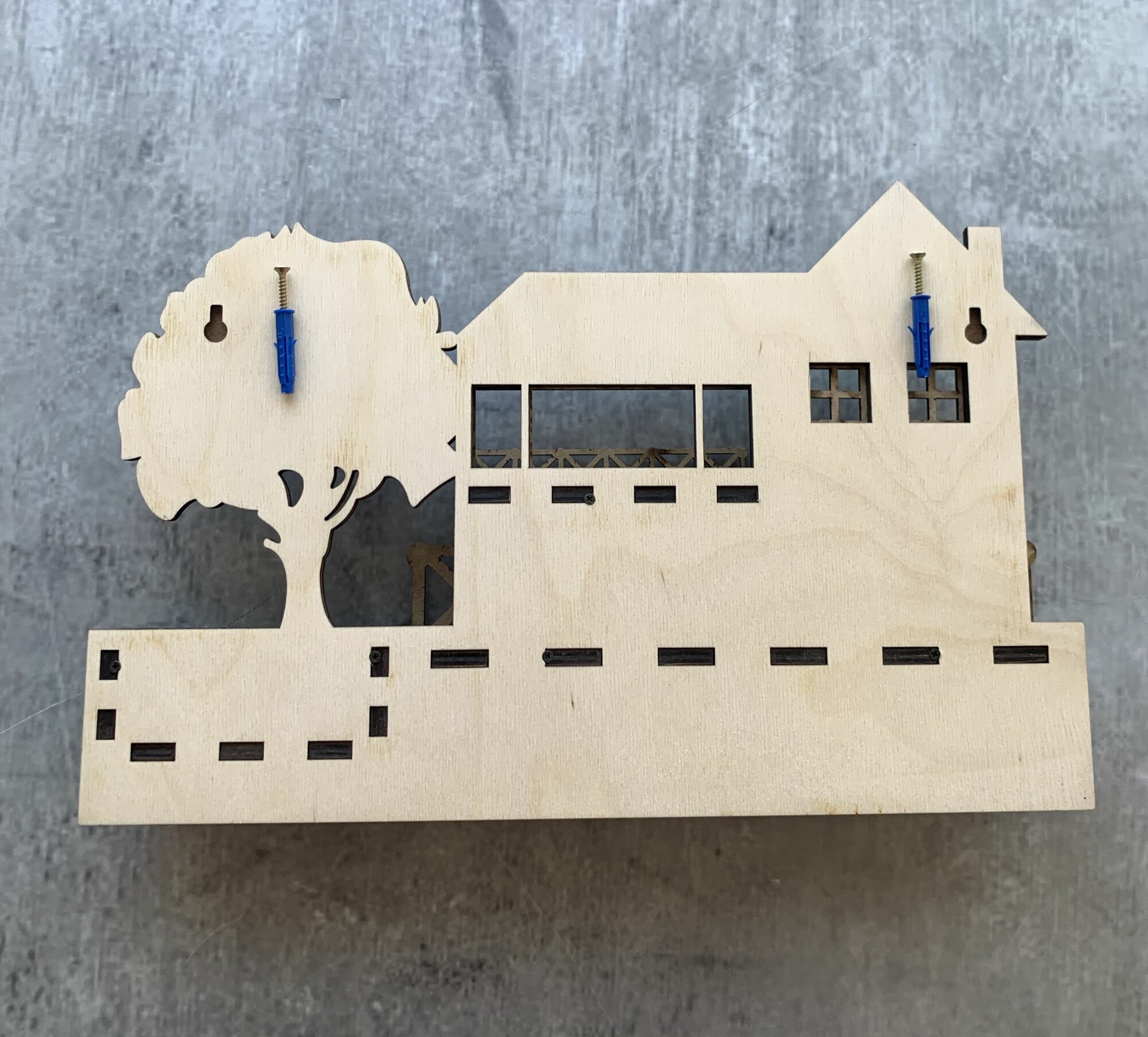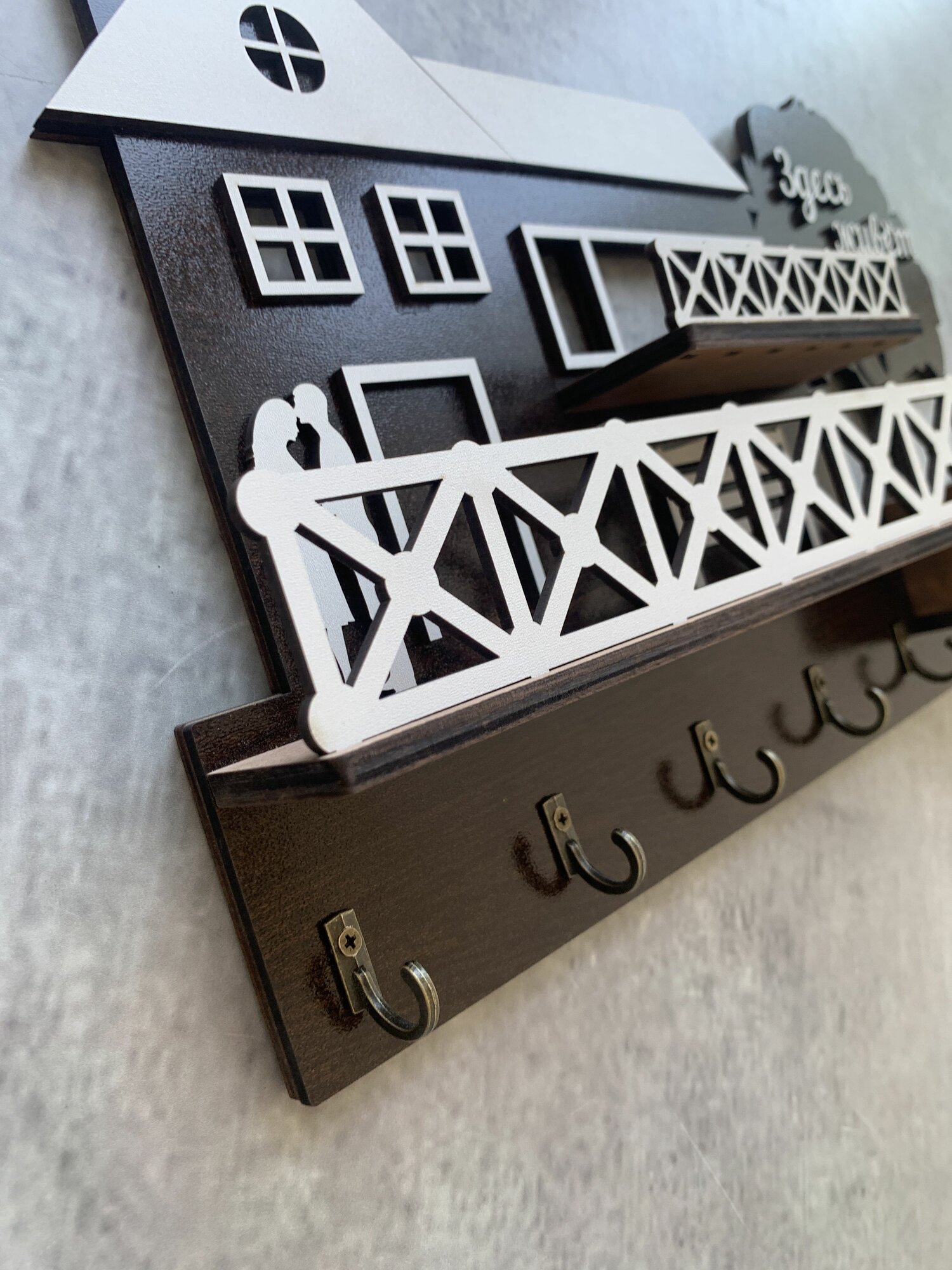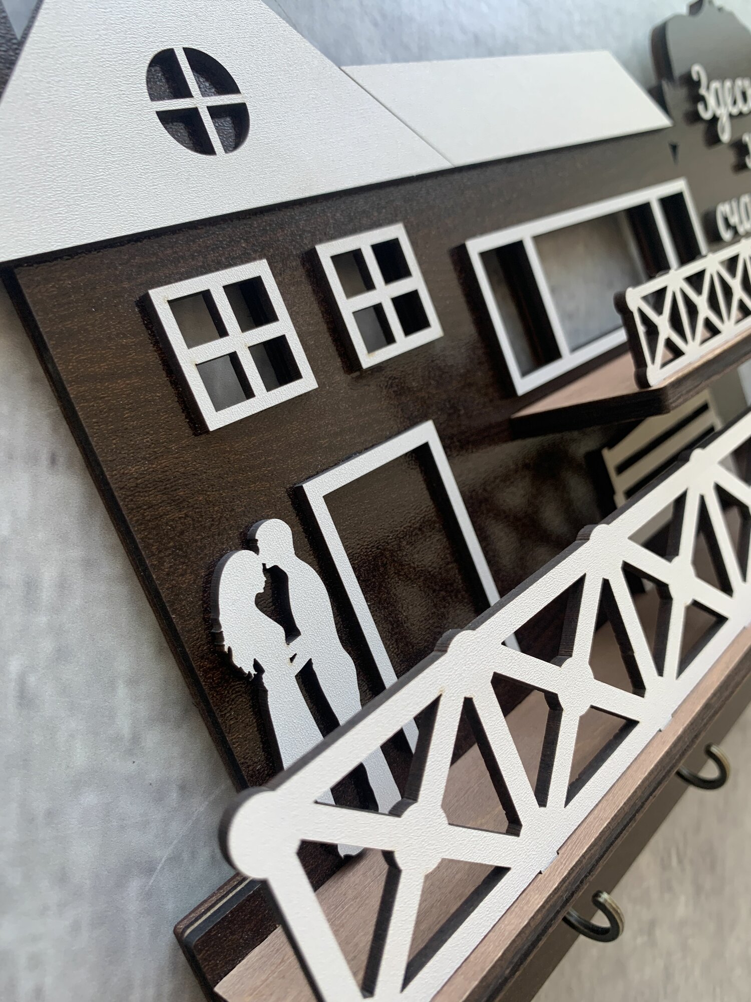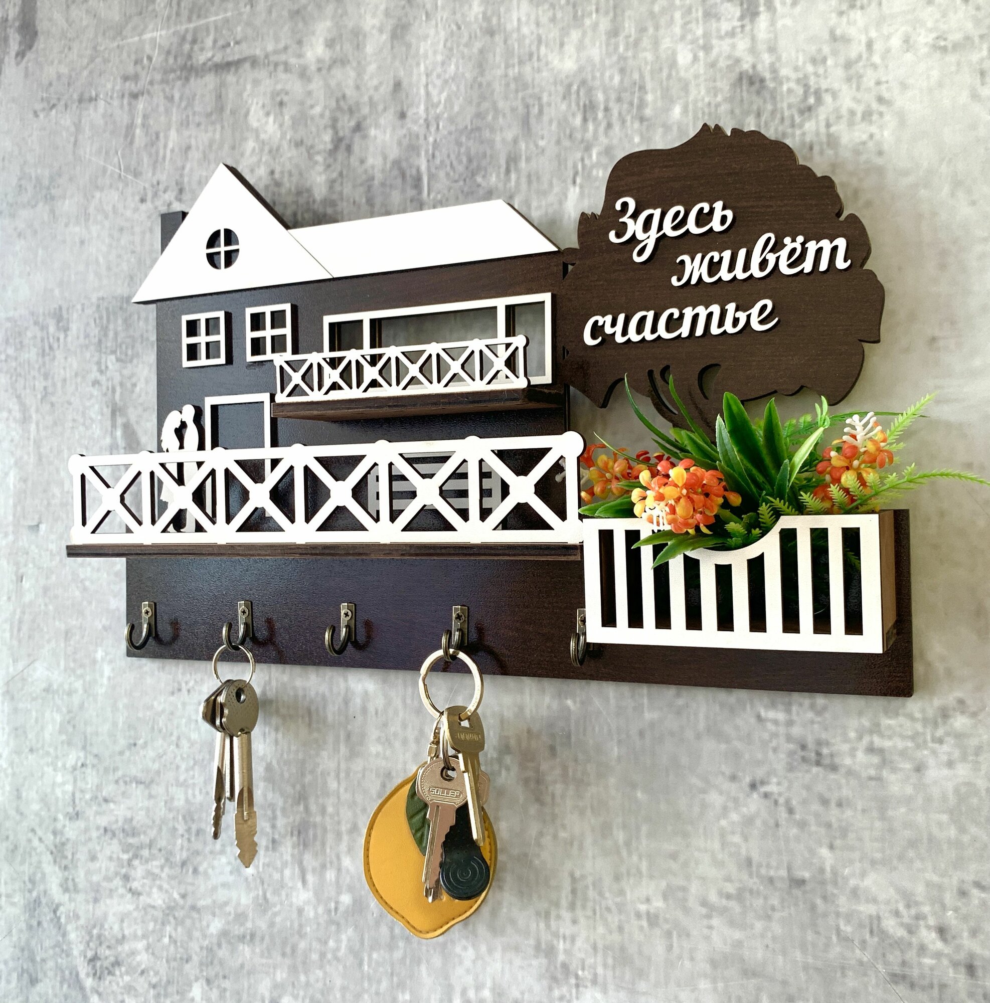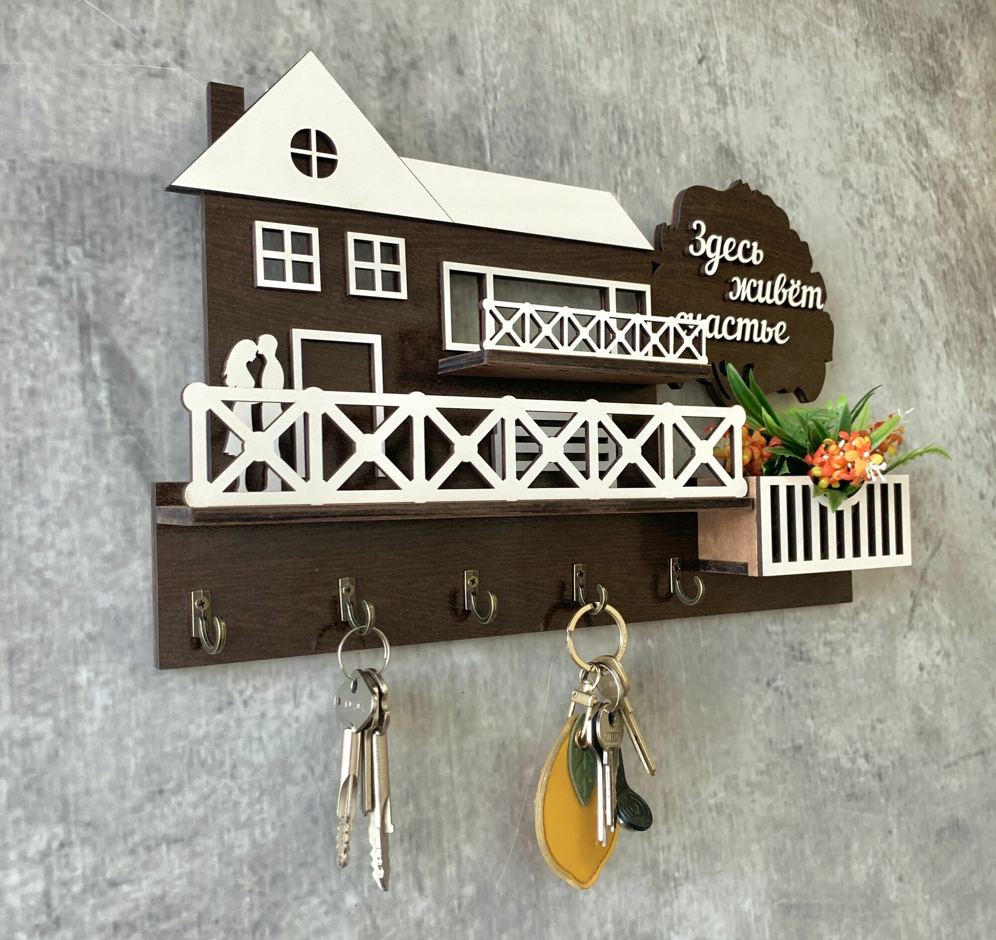 Ключница настенная "Домик с балконом" Коричневый Home Decor надпись "здесь живёт счастье" интересное: