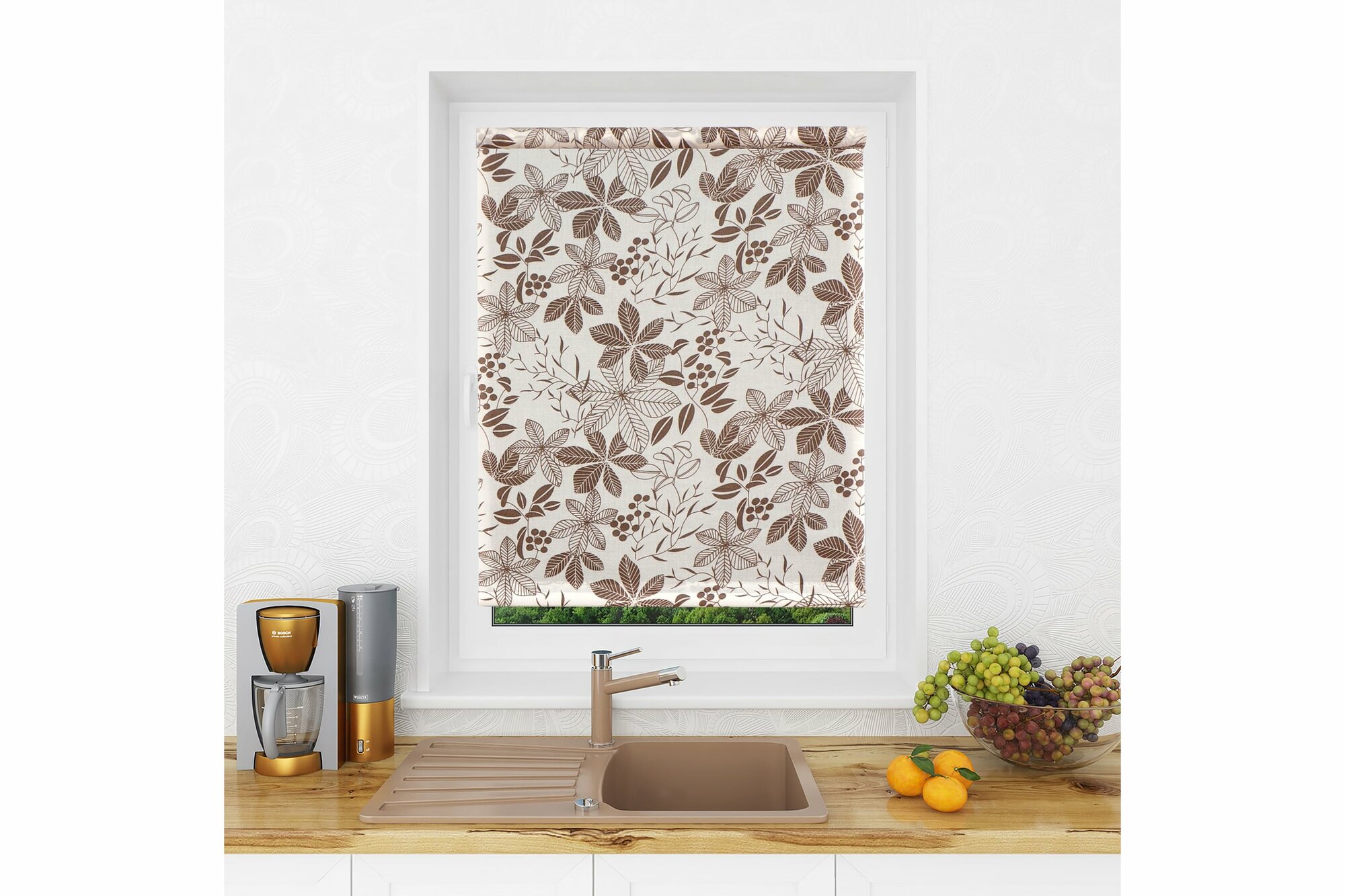 Рулонная штора LM DECOR "Флауэр" 03 Коричневый 85х160 см