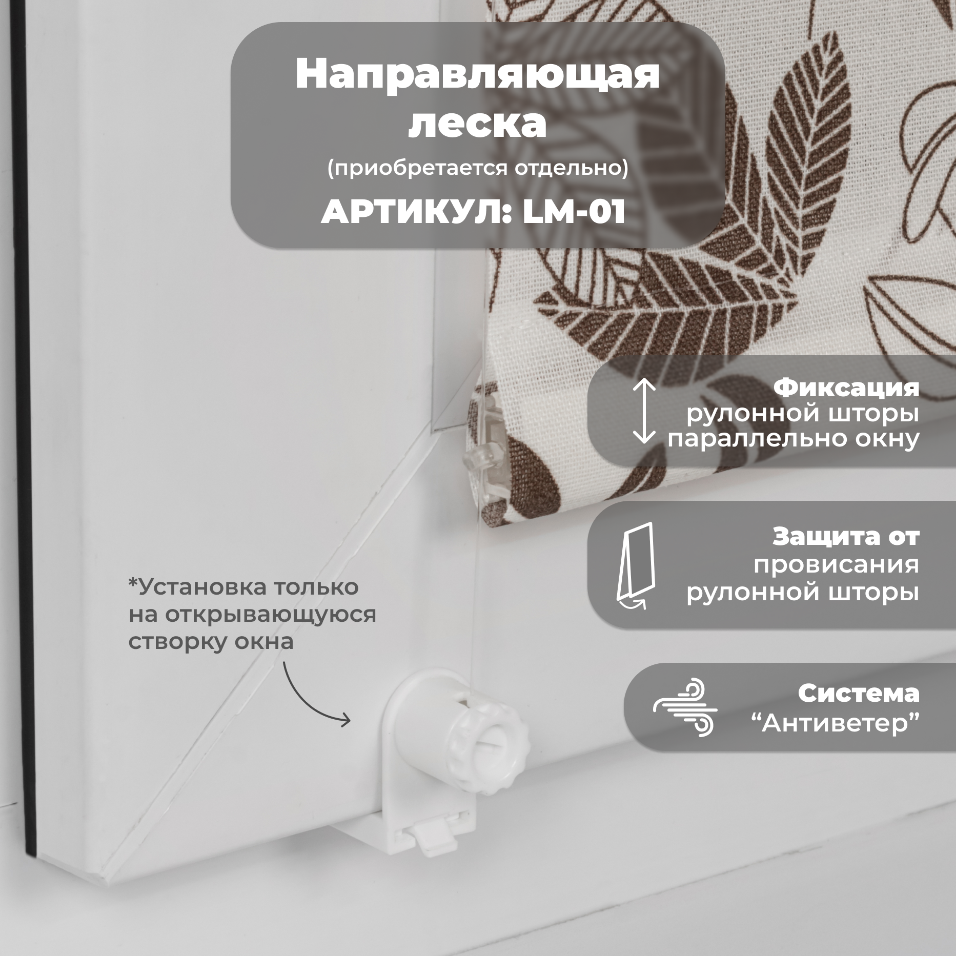 | Дополнительная информация | Несколько вариантов установки: без сверления на пластиковое глухое окно или с поворотно-откидным механизмом; со сверлением - на любое окно, на неподвижную раму, на стену (оконный проем), на раму, к потолку, в проем. |
