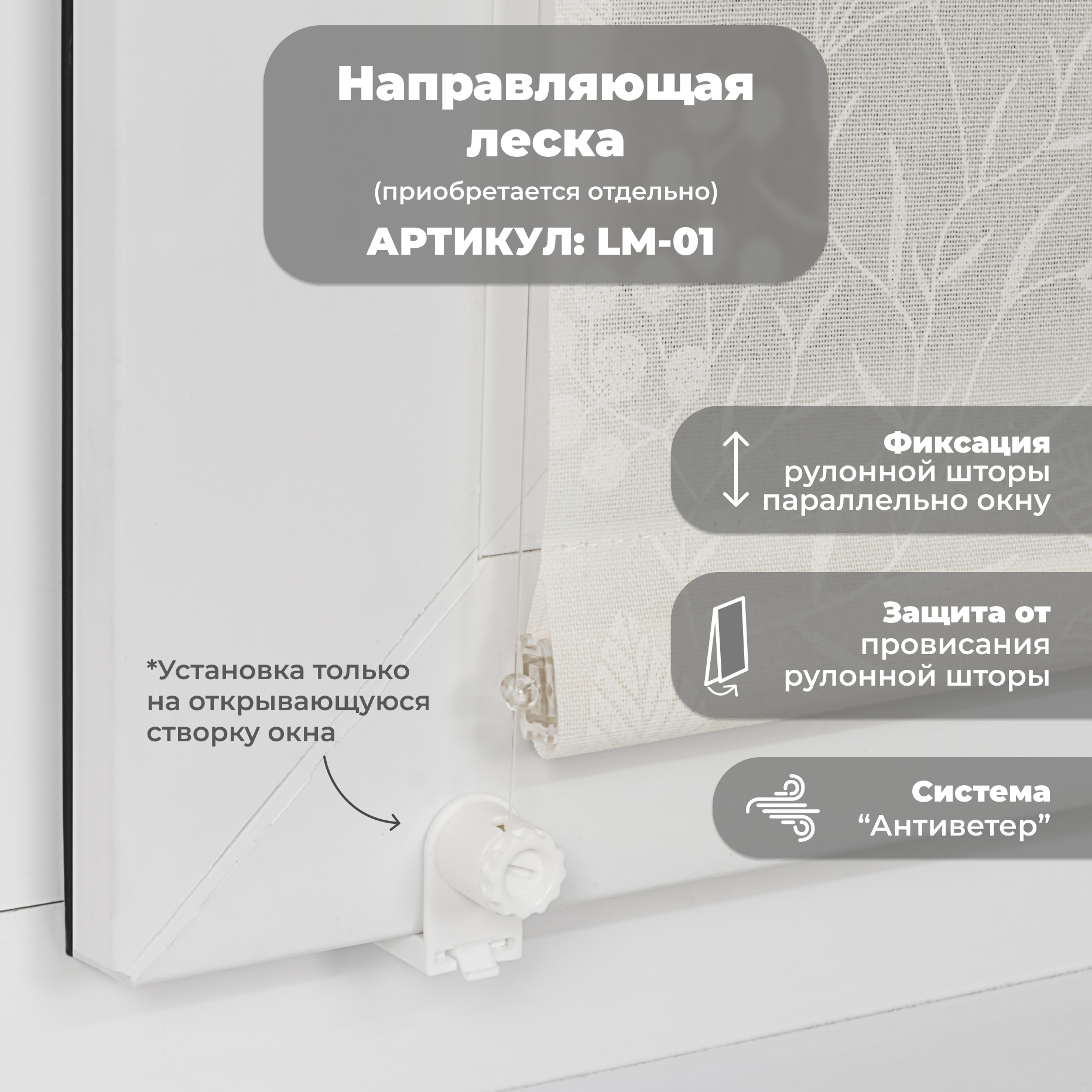 | Дополнительная информация | Несколько вариантов установки: без сверления на пластиковое глухое окно или с поворотно-откидным механизмом; со сверлением - на любое окно, на неподвижную раму, на стену (оконный проем), на раму, к потолку, в проем. |