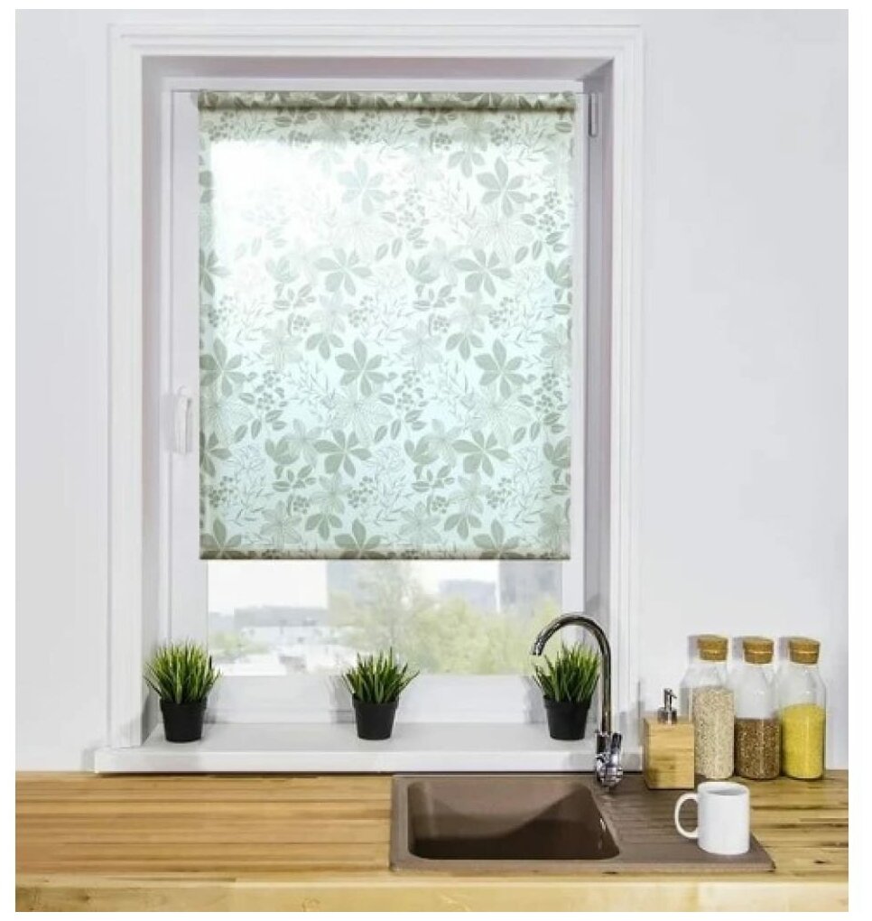 Рулонная штора LM DECOR "Флауэр" 02 Серо-зелёный 48х160 см
