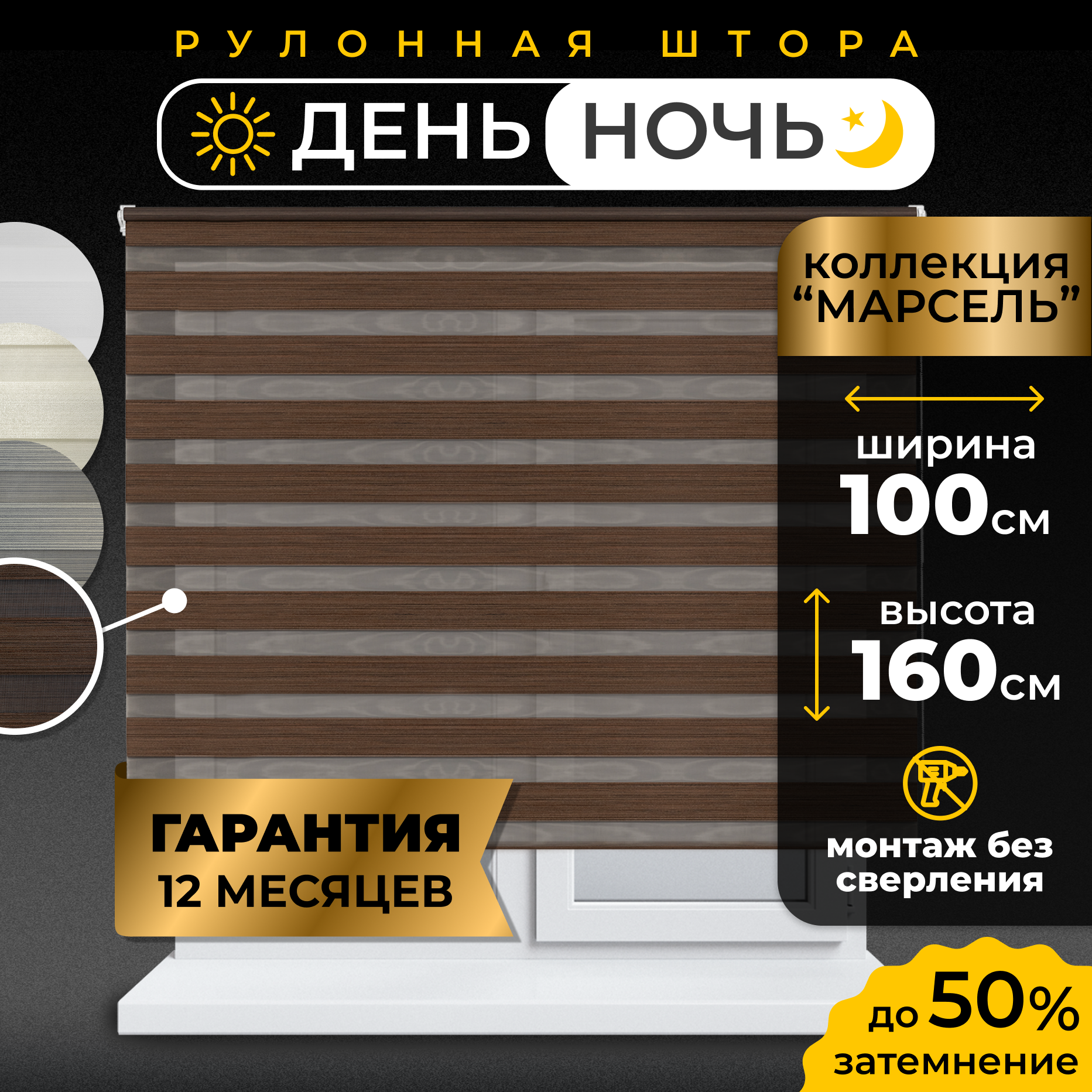 Купить Рулонная штора LM Decor День-Ночь Марсель 25-06 шоколадный 100х160