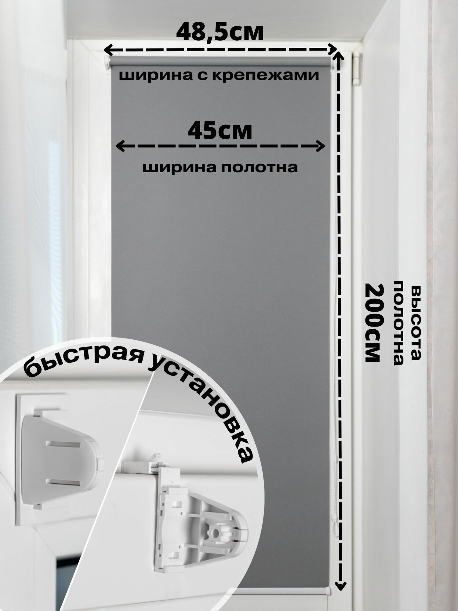 Купить Рулонные шторы ширина 45 на 200 см темно-серые жалюзи на окна