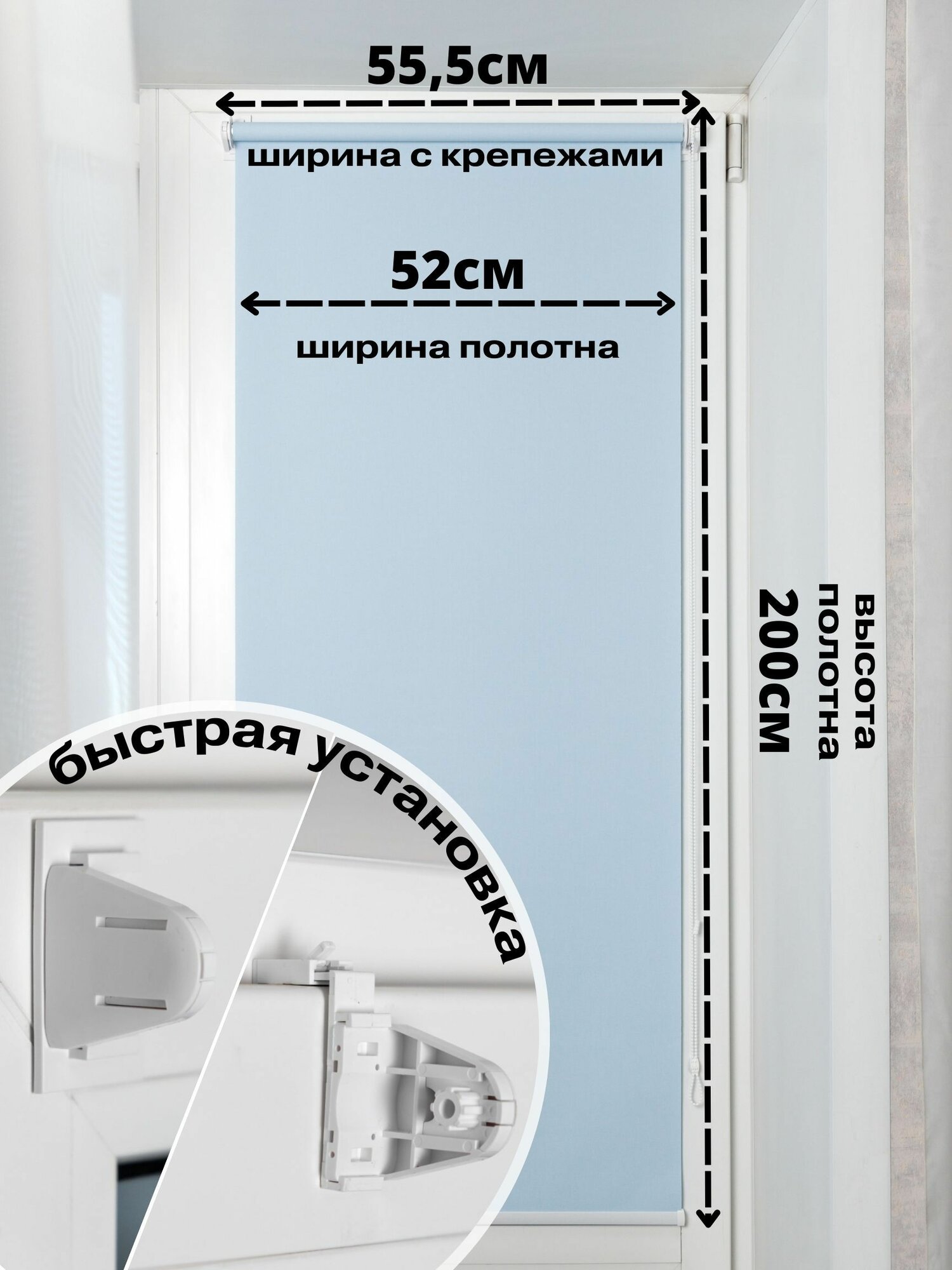 Рулонные шторы ширина 55 на 200 см голубые жалюзи на окна