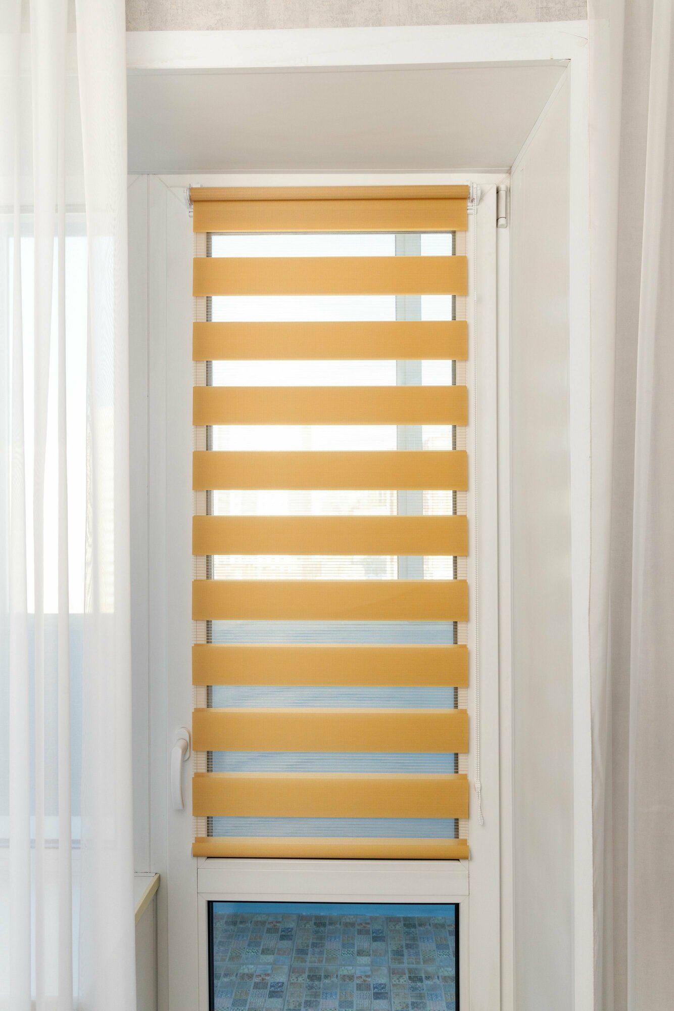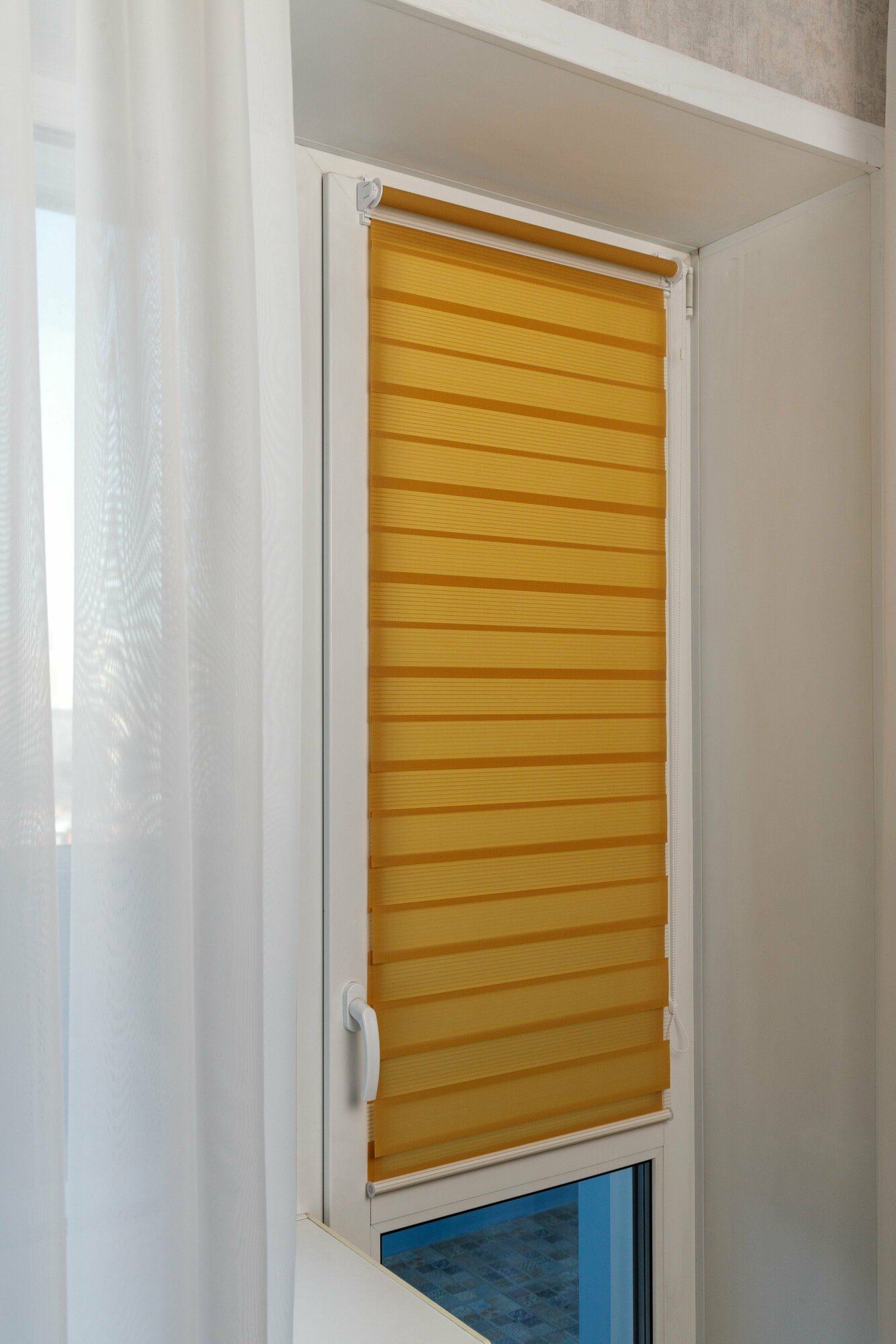 Рулонные шторы день ночь ширина 90, высота 220 см, желтые жалюзи на окна Зебра для кухни, спальни, детской, на балкон