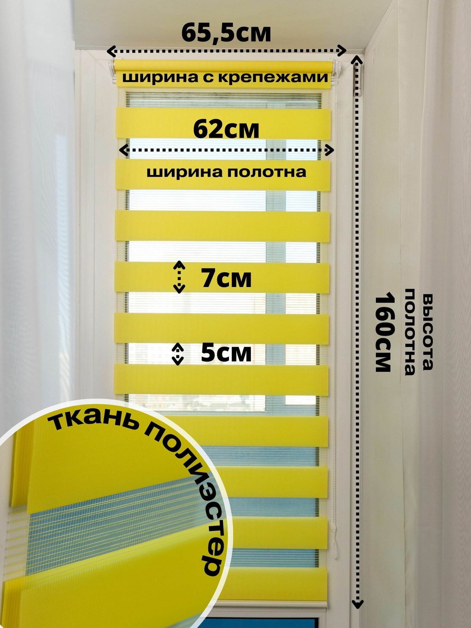 СохранитьРулонные шторы день ночь ширина 62см, высота 160 см желтые жалюзи на окна Зебра для кухни, спальни, детской, на балкон интересное: