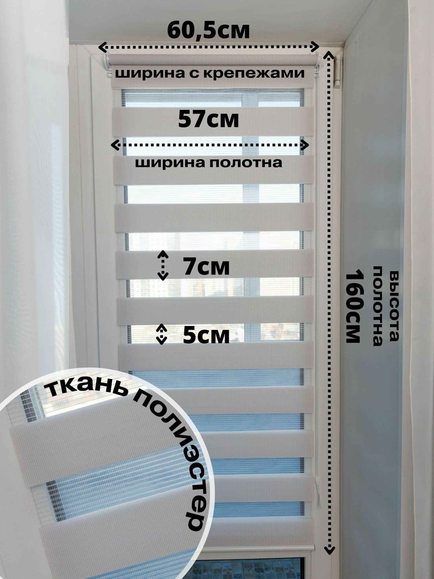 Рулонные шторы день ночь ширина 57см, высота 160 см белые жалюзи на окна Зебра для кухни, спальни, детской, на балкон