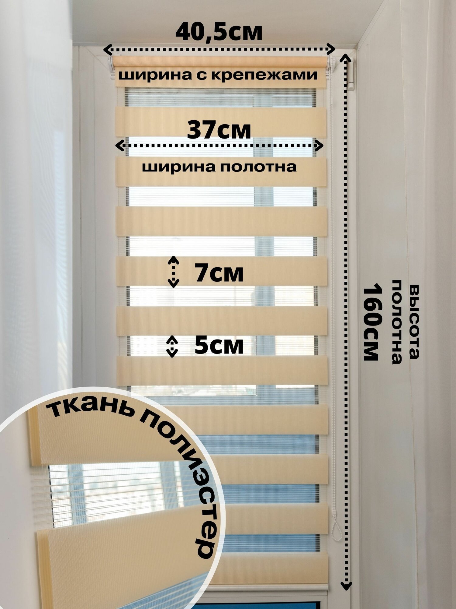 СохранитьРулонные шторы день ночь ширина 37 см, высота 160 см персиковые жалюзи светло-бежевые на окна Зебра для кухни, спальни, детской, на балкон интересное: