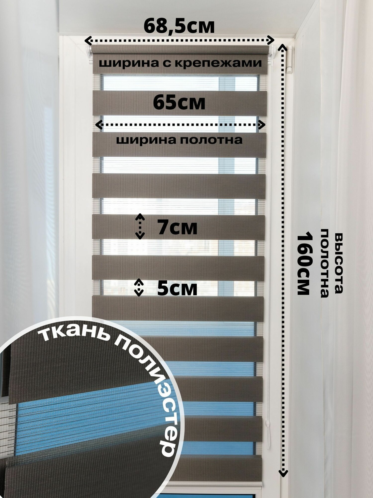 Рулонные шторы на окна, рулонные шторы день-ночь, жалюзи на окна 67х160см