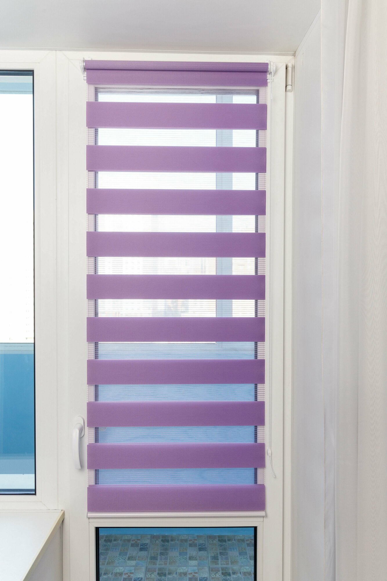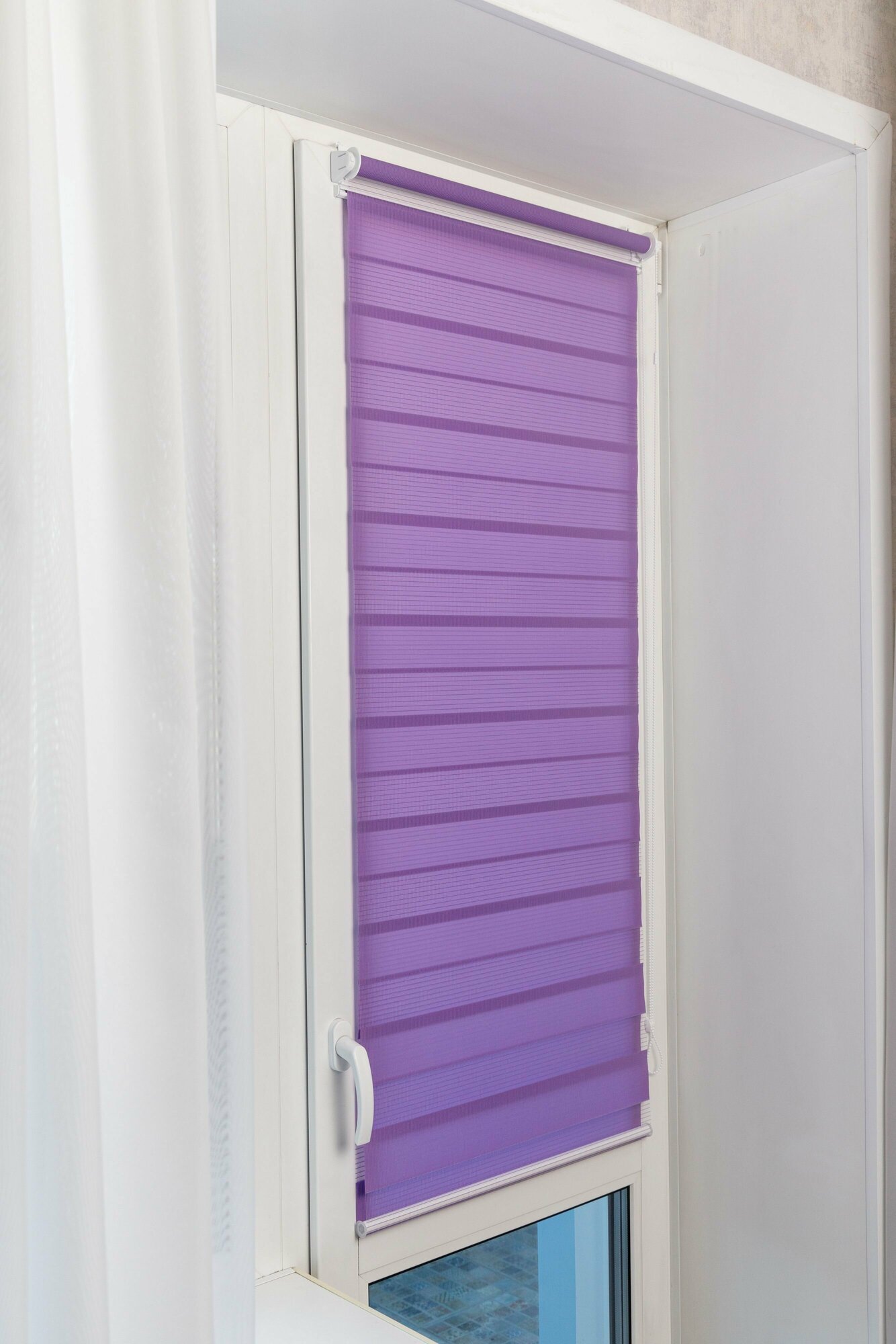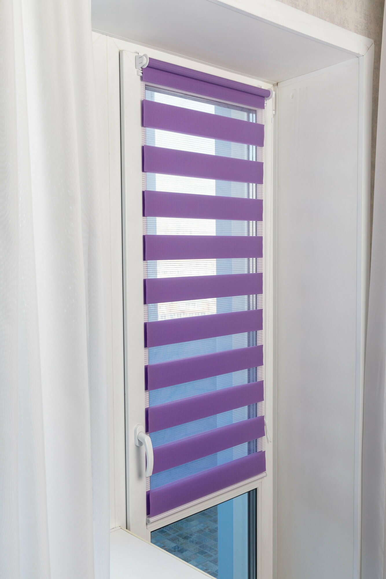 Рулонные шторы день ночь ширина 57, высота 220 см, сиреневые жалюзи на окна Зебра для кухни, спальни, детской, на балкон
