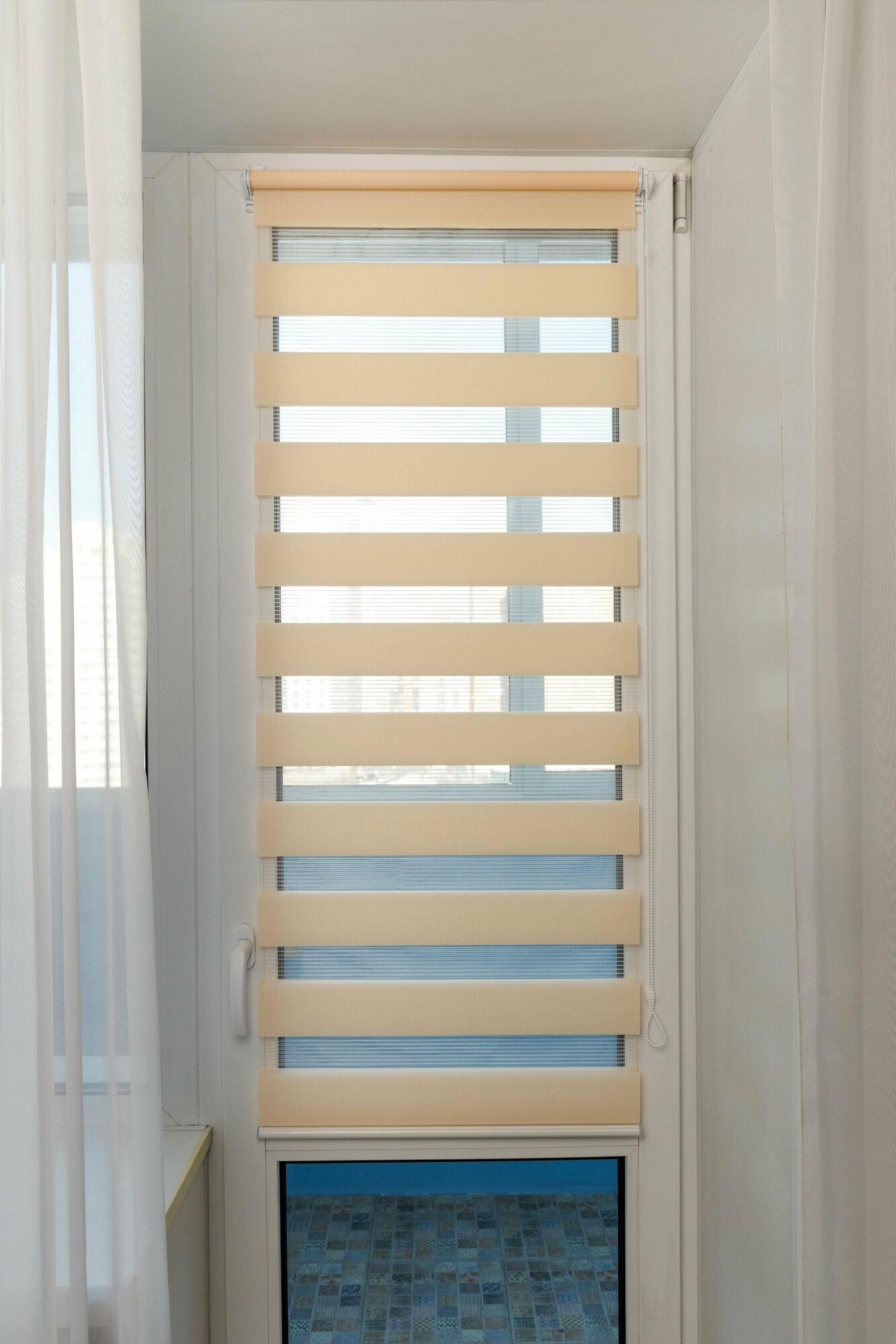 Рулонные шторы день ночь ширина 37, высота 220 см, бежевые жалюзи на окна Зебра для кухни, спальни, детской, на балкон