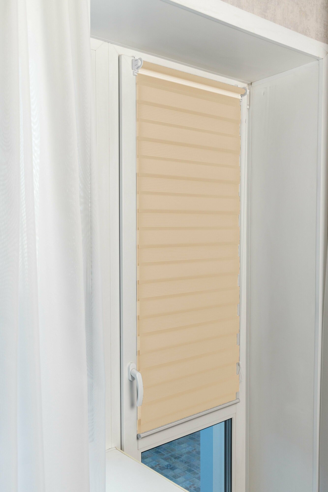 Рулонные шторы день ночь 50х160 см, бежевые жалюзи на окна