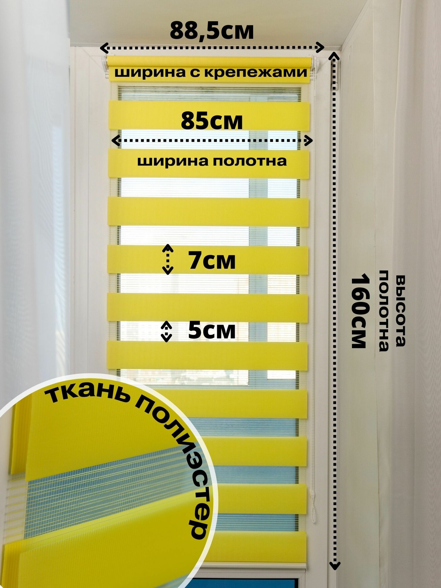 СохранитьРулонные шторы день ночь ширина 85см, высота 160 см желтые жалюзи на окна Зебра для кухни, спальни, детской, на балкон интересное: