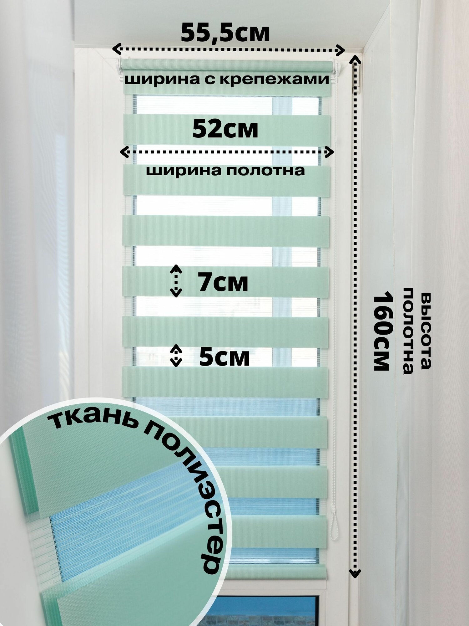 Купить Рулонные шторы день ночь ширина 52см, высота 160 см бирюзовые жалюзи на окна Зебра для кухни, спальни, детской, на балкон
