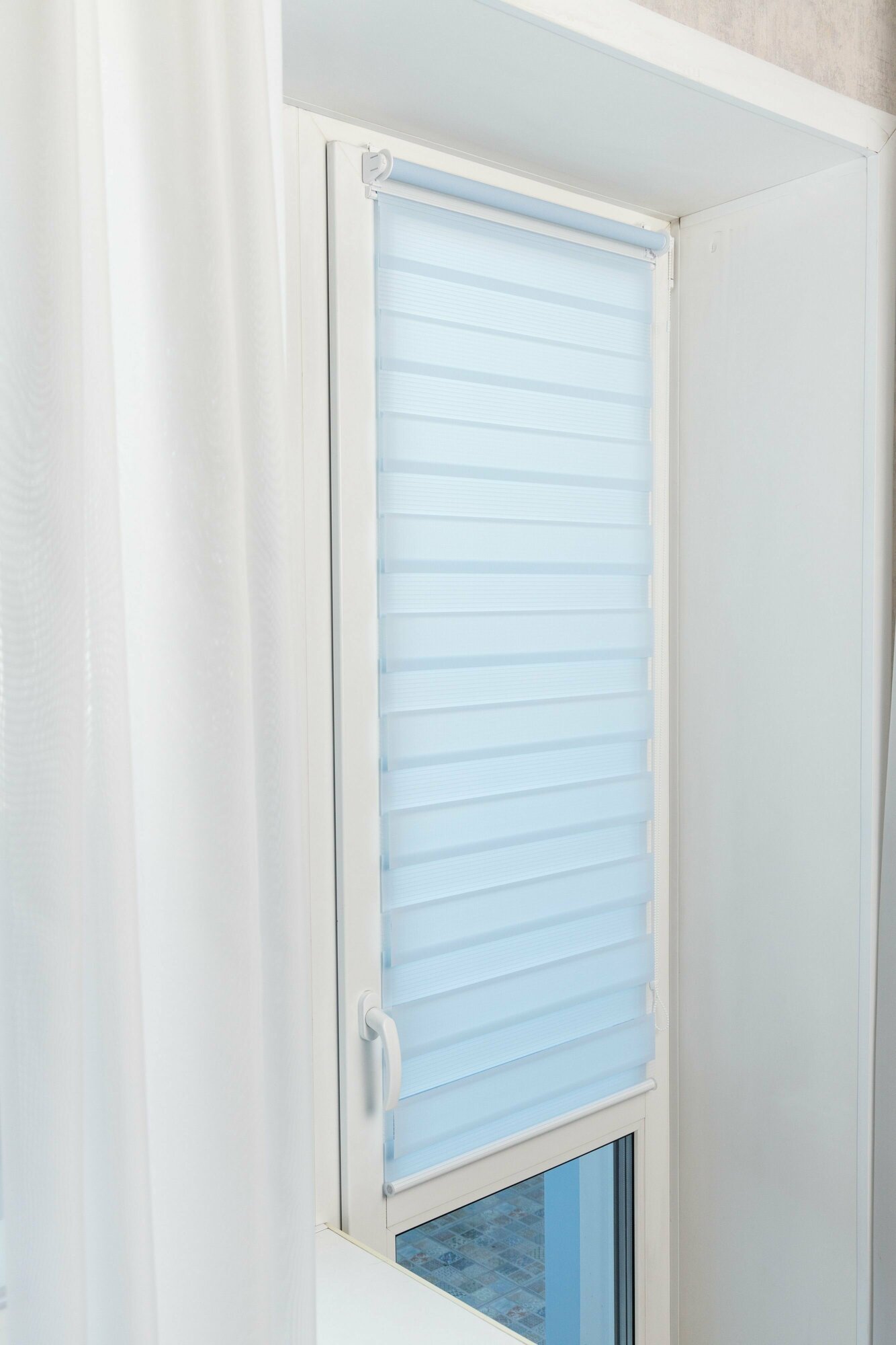 Купить Рулонные шторы день ночь ширина 62, высота 220 см, голубые жалюзи на окна Зебра для кухни, спальни, детской, на балкон