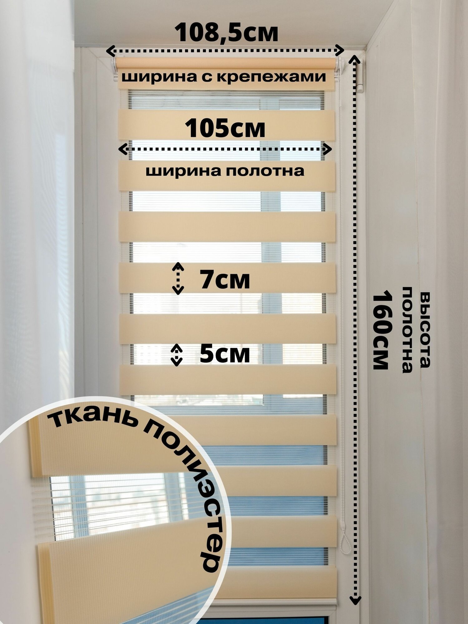 СохранитьРулонные шторы день ночь ширина 105см, высота 160 см персиковые жалюзи светло-бежевые на окна Зебра для кухни, спальни, детской, на балкон интересное:
