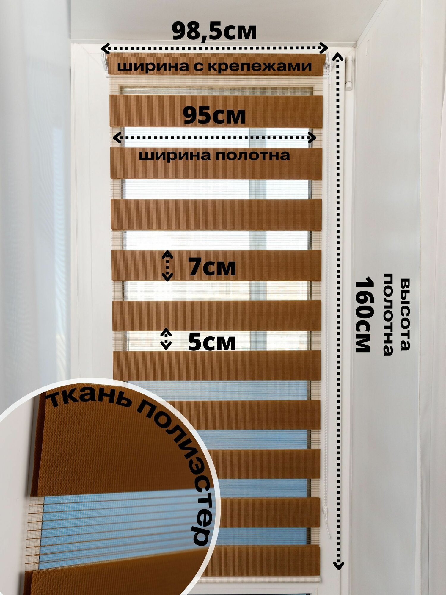 СохранитьРулонные шторы день ночь ширина 95см, высота 160 см темно-карамельные жалюзи на окна Зебра для кухни, спальни, детской, на балкон интересное: