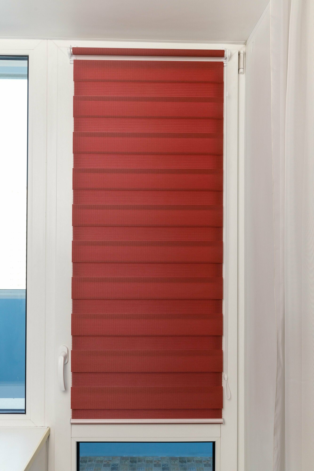 СохранитьРулонные шторы день ночь ширина 95см,высота 160 см бордовые жалюзи на окна Зебра для кухни, спальни, детской, на балкон интересное: