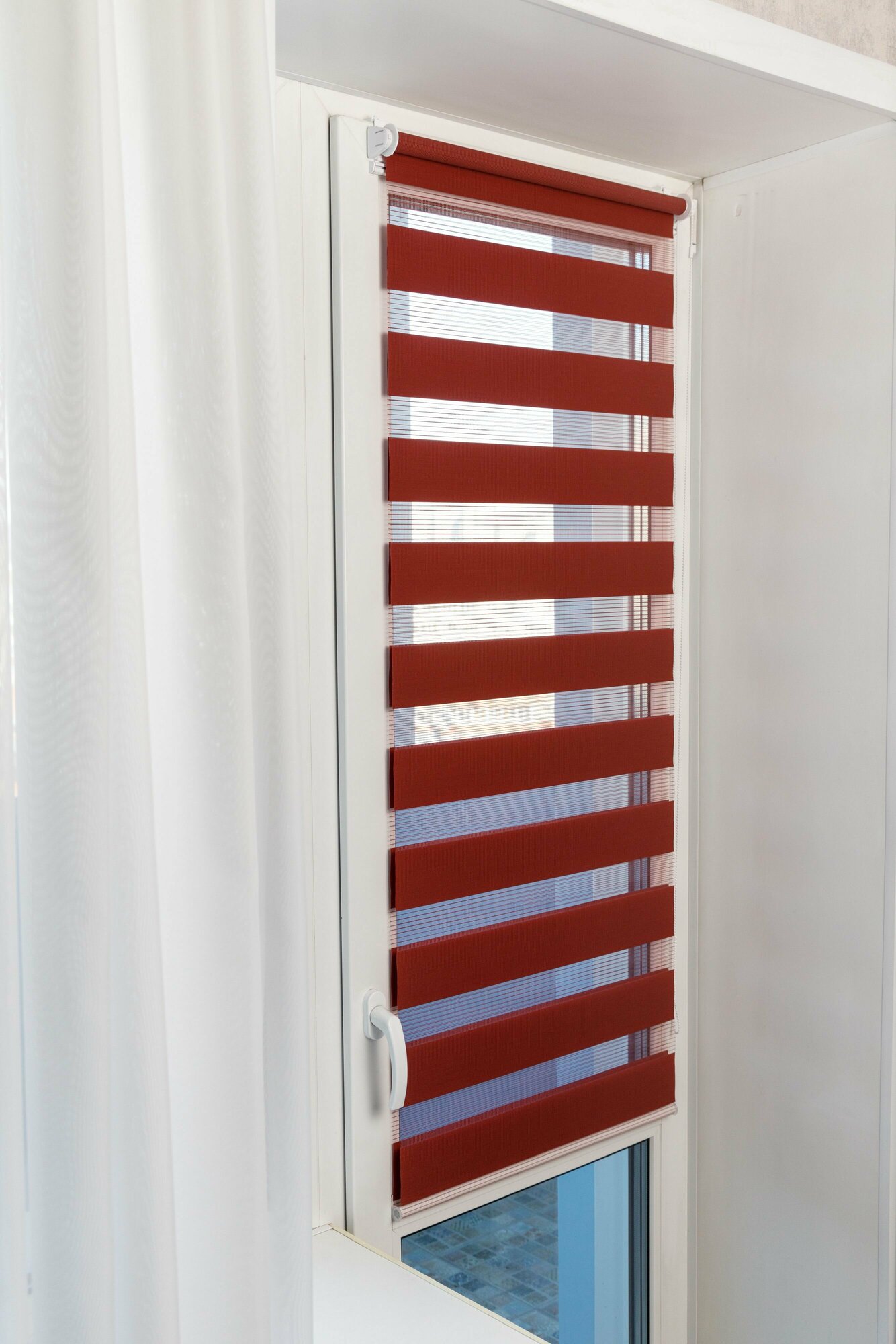 Купить Рулонные шторы день ночь ширина 95см,высота 160 см бордовые жалюзи на окна Зебра для кухни, спальни, детской, на балкон
