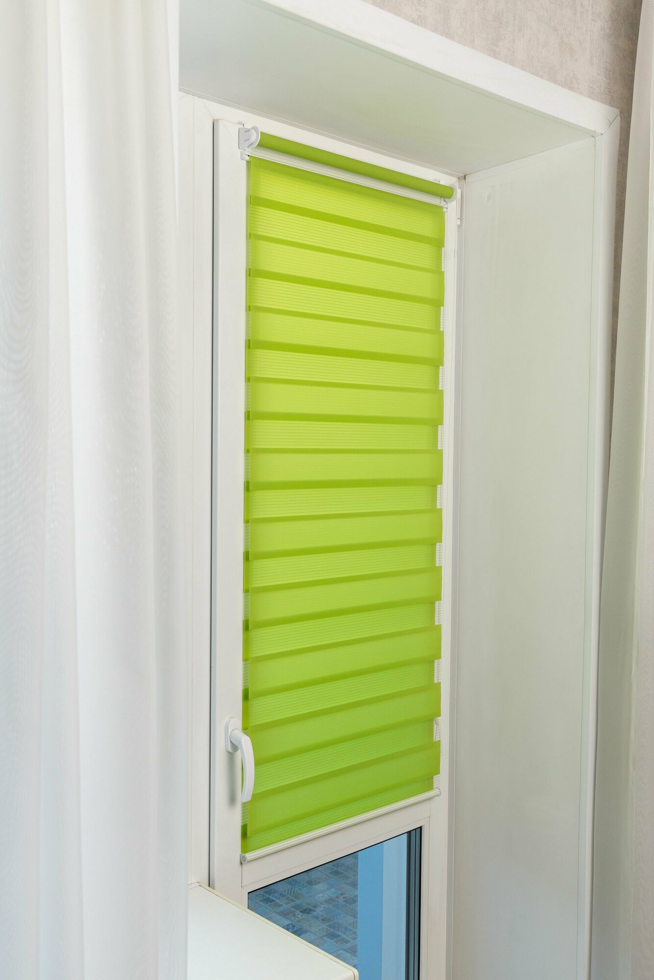 Рулонные шторы день ночь 80х160 см, зеленые жалюзи на окна
