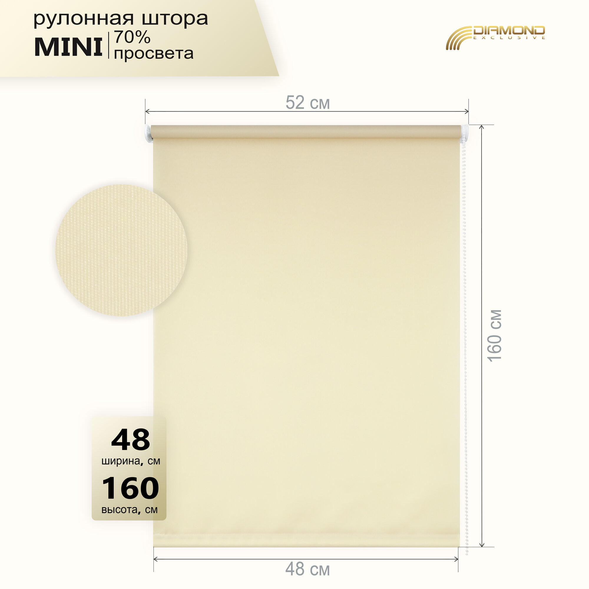 Купить Рулонная штора Плэйн 48х160 см, цвет светло-бежевый
