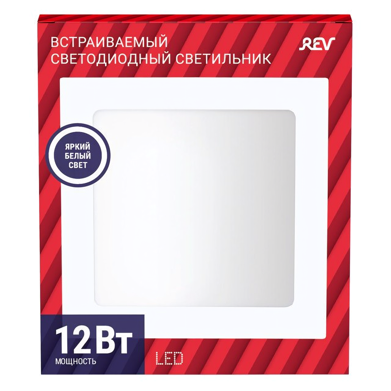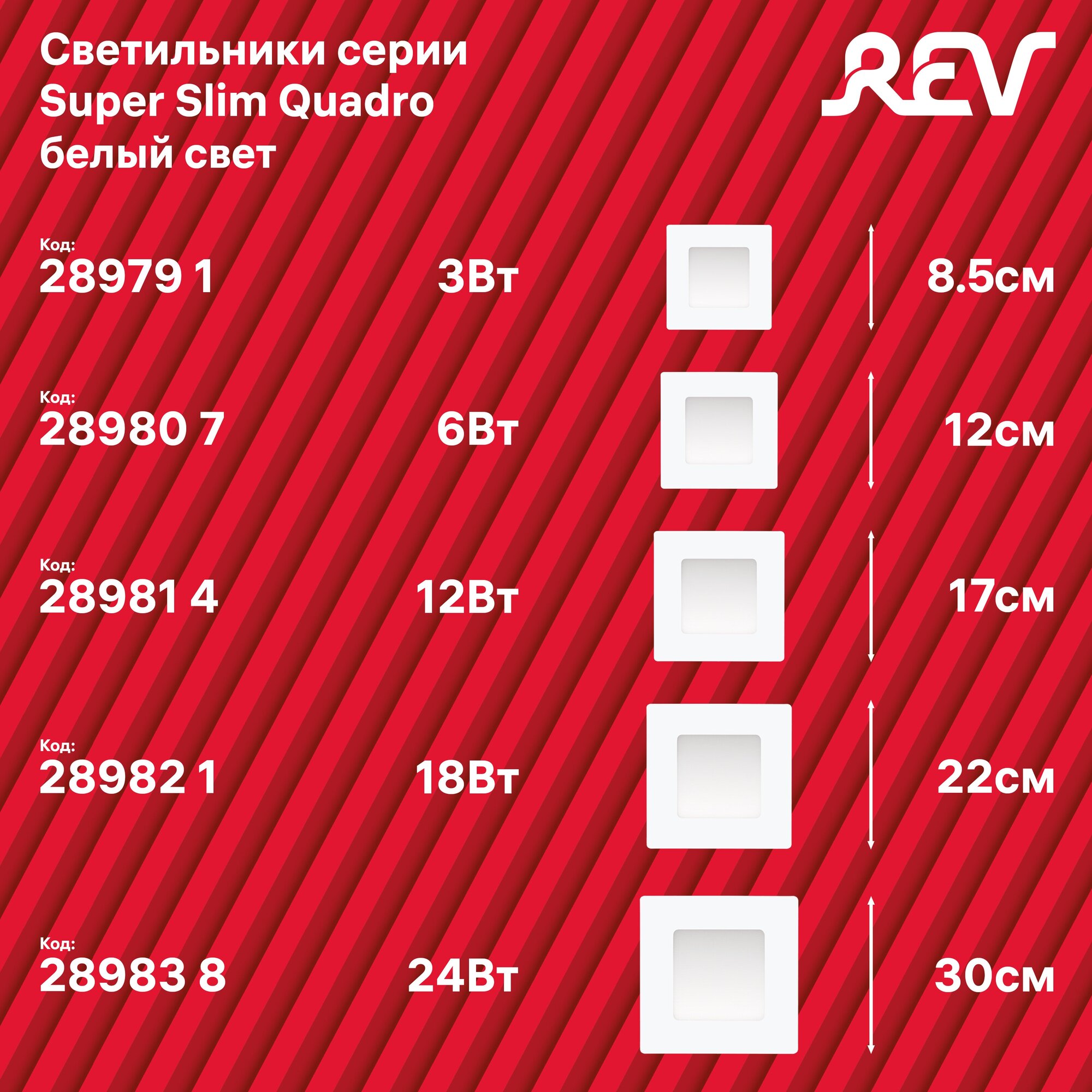 | Комплектация | Светильник встраиваемый REV SuperSlim Quadro 12Вт 4000К 170мм белый |
