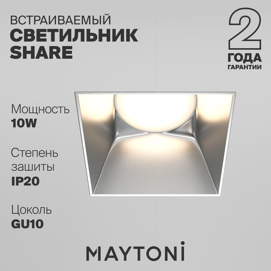 СохранитьВстраиваемый светильник Maytoni Technical Share DL051-01-GU10-SQ-WS интересное: