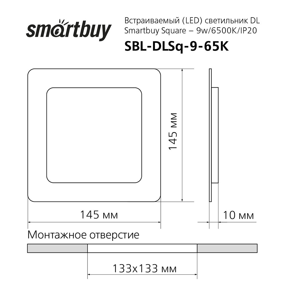 Встраиваемый (LED) светильник DL Smartbuy Square-9w/6500K/IP20 (SBL-DLSq-9-65K) интересное: