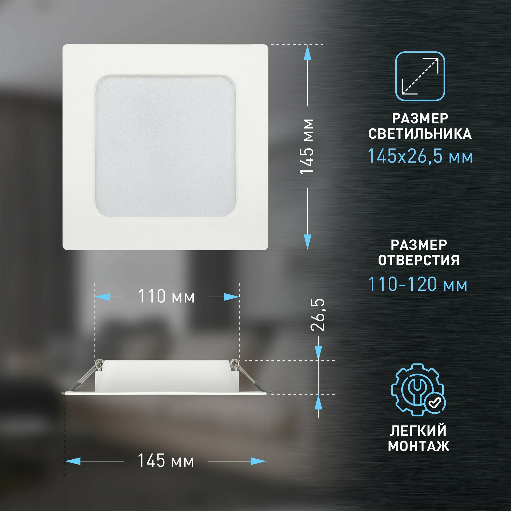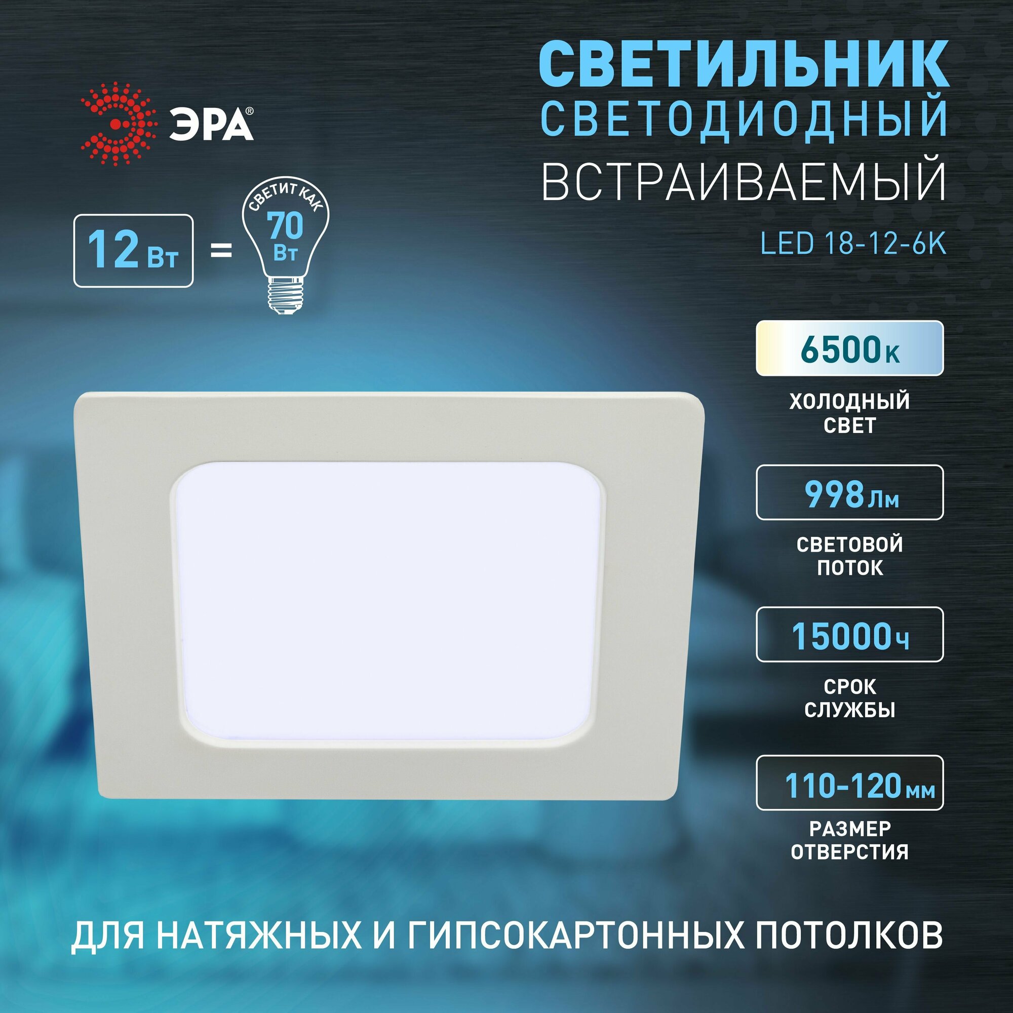 СохранитьЭРА Светильник светодиодный встраиваемый LED 18126K квадратный 12Вт 6500К Б0057444 интересное: