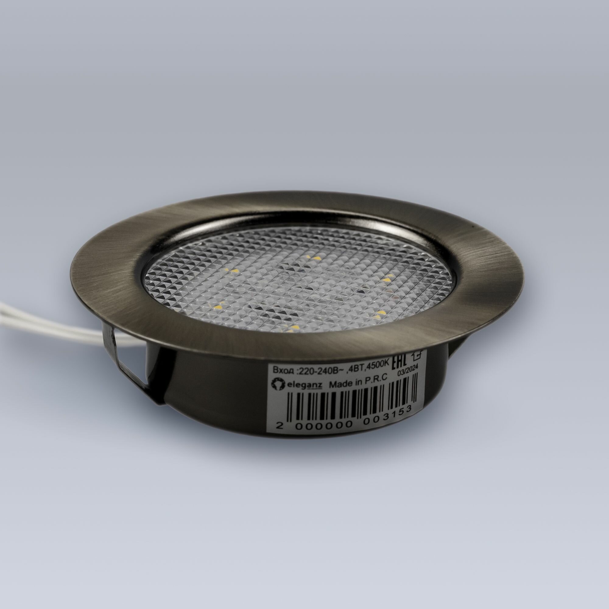 Светильник мебельный "Eleganz 4Вт", бронзовый цвет, корпус Металл, круглый, нейтральный белый свет, 73х73х21мм.