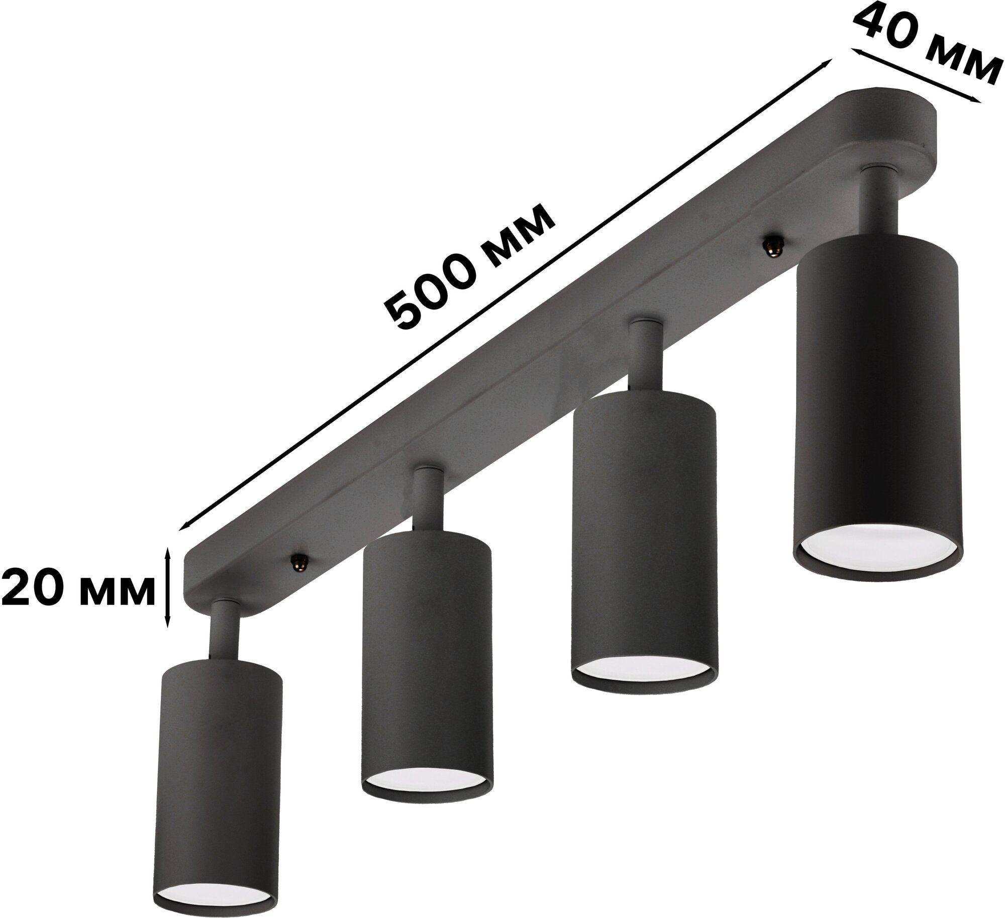 Накладной светильник Ritter , Arton, поворотный, цилиндр, 500x55x160мм, 4хGU10, алюминий, черный, 59936 4,