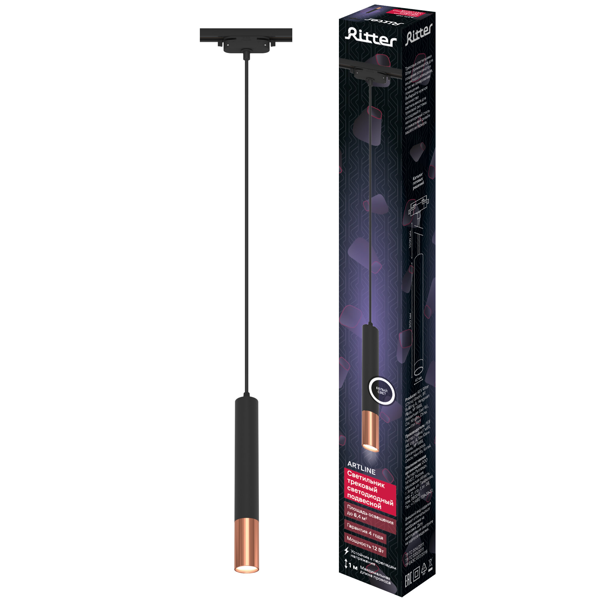 Светильник трековый потолочный подвесной светодиодный однофазный черный с золотым, 12Вт, крепление на любой шинопровод 220В, Ritter ARTLINE 59711 1 интересное: