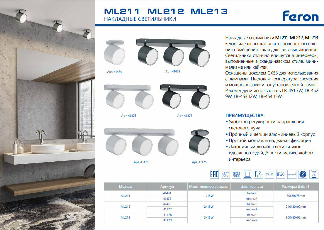 | Подробная комплектация | Споты и трек-системы Feron 41475 |