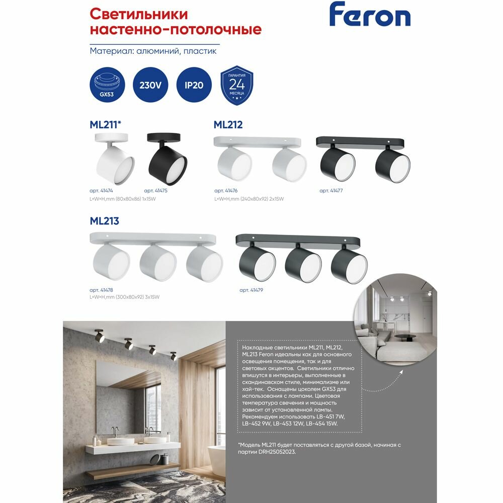 Светильник Feron ML211, настенный, поворотный, цоколь GX53