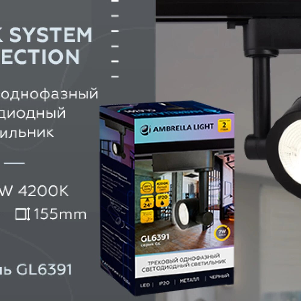 Трековый однофазный светодиодный светильник Ambrella GL6391 BK черный LED 7W 4200K 24°