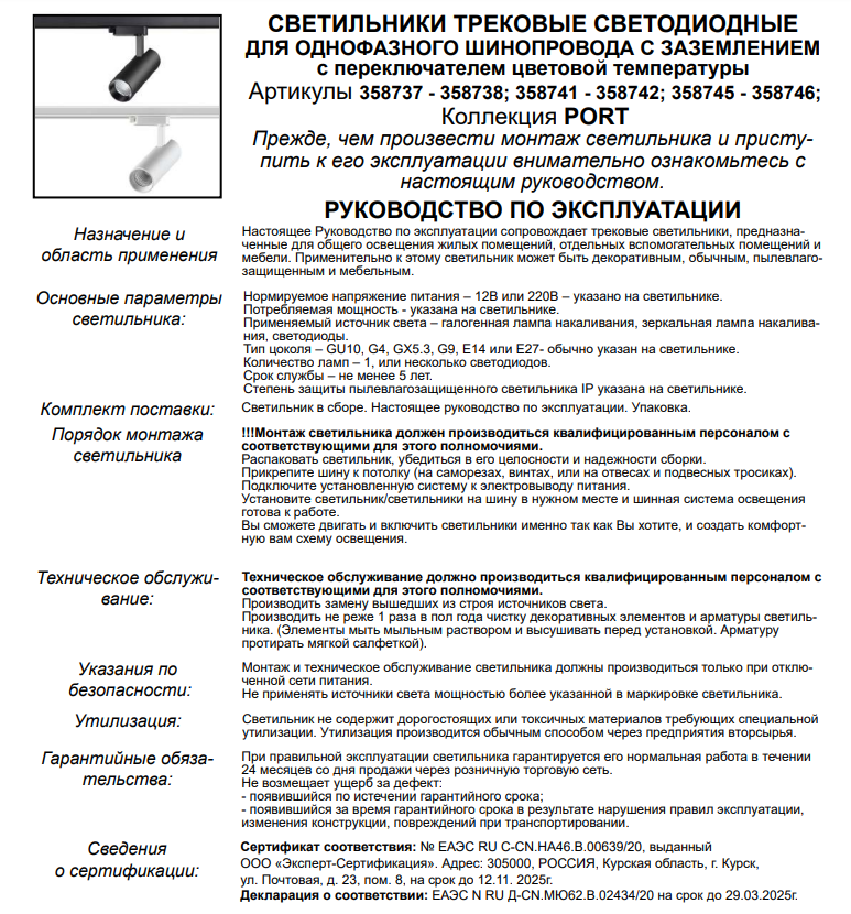 | Подробная комплектация | Споты и трек-системы Novotech 358705 |