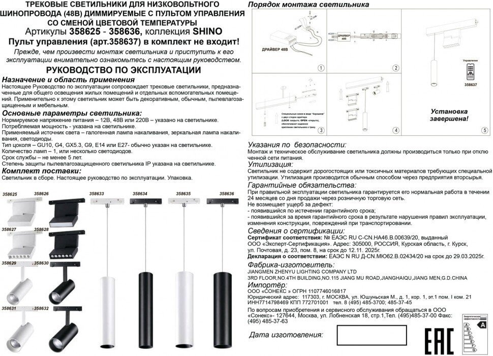 | Подробная комплектация | Споты и трек-системы Novotech 358705 |