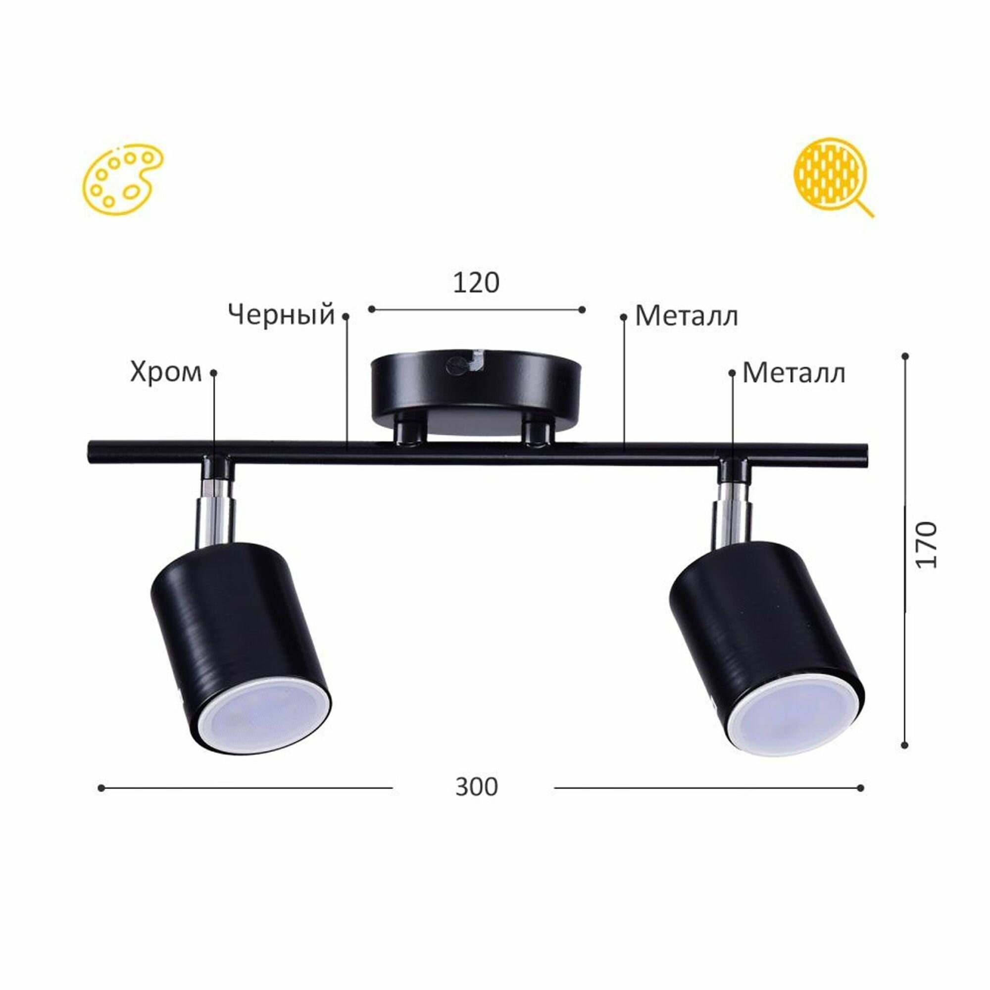 Настенно-потолочный светильник РС21857 BK+CR/2C РОССВЕТ интересное: