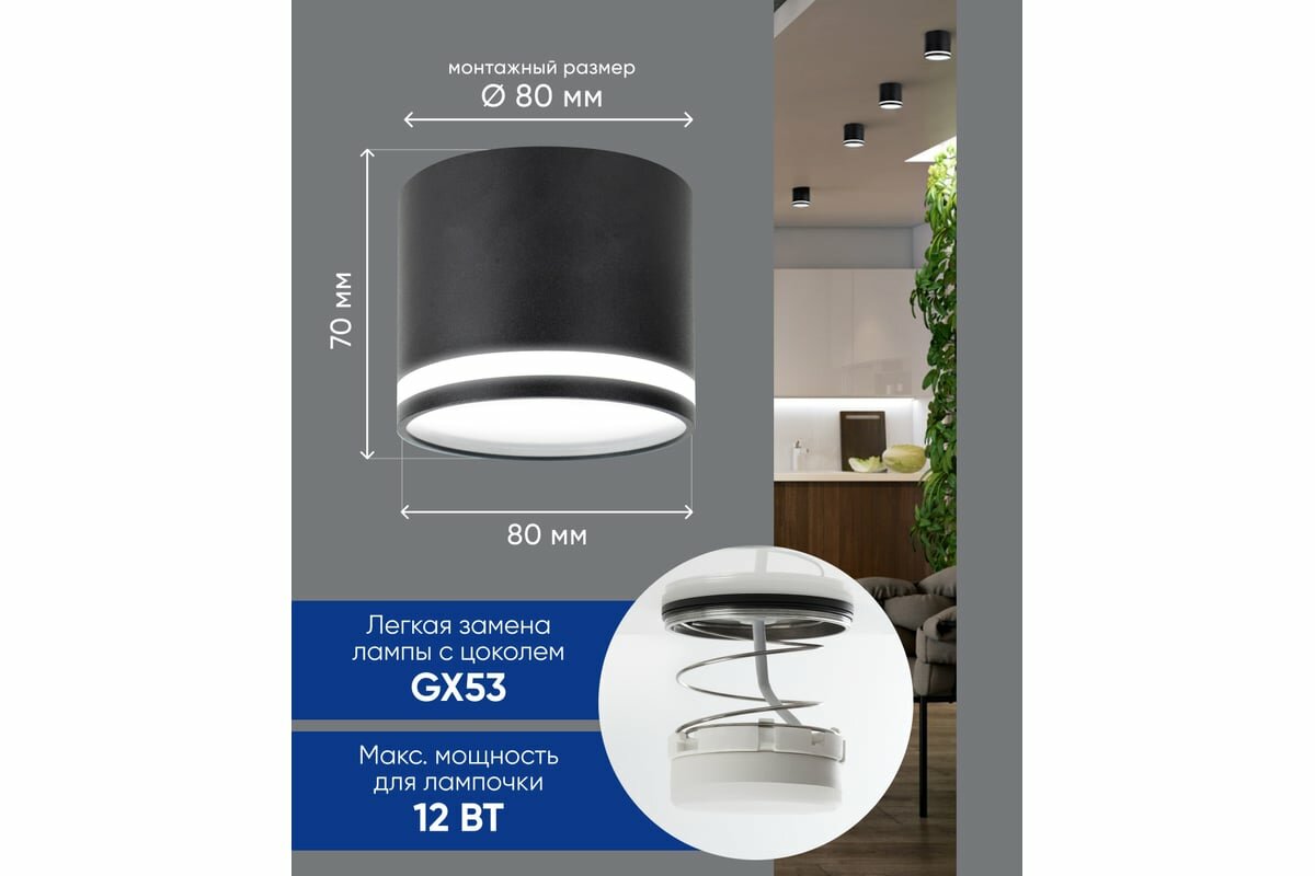 Светильник потолочный 12W, 230V, GX53, черный, HL362, Feron, 41997