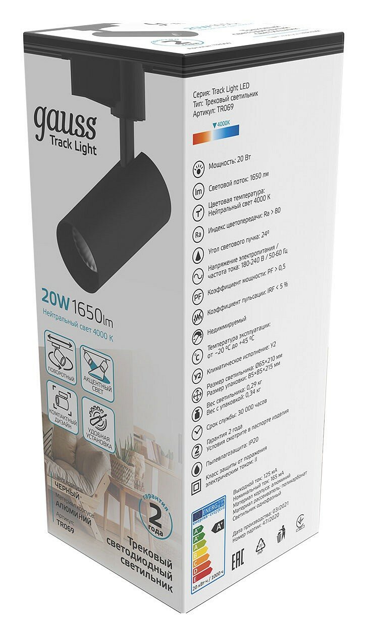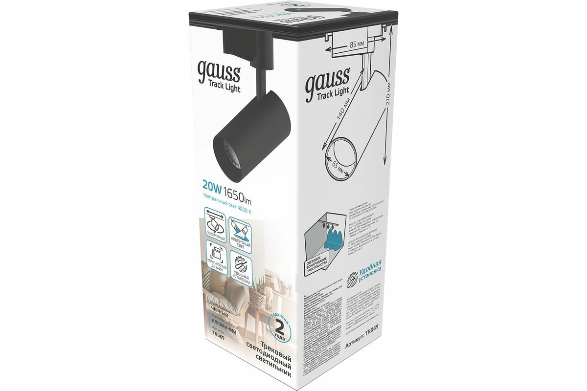 | Подробная комплектация | Споты и трек-системы Gauss TR069 |