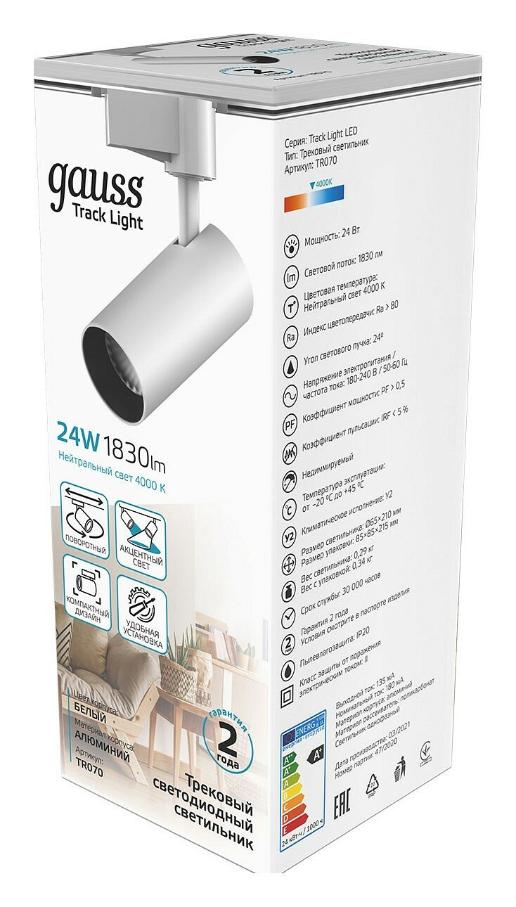 | Подробная комплектация | Споты и трек-системы Gauss TR069 |