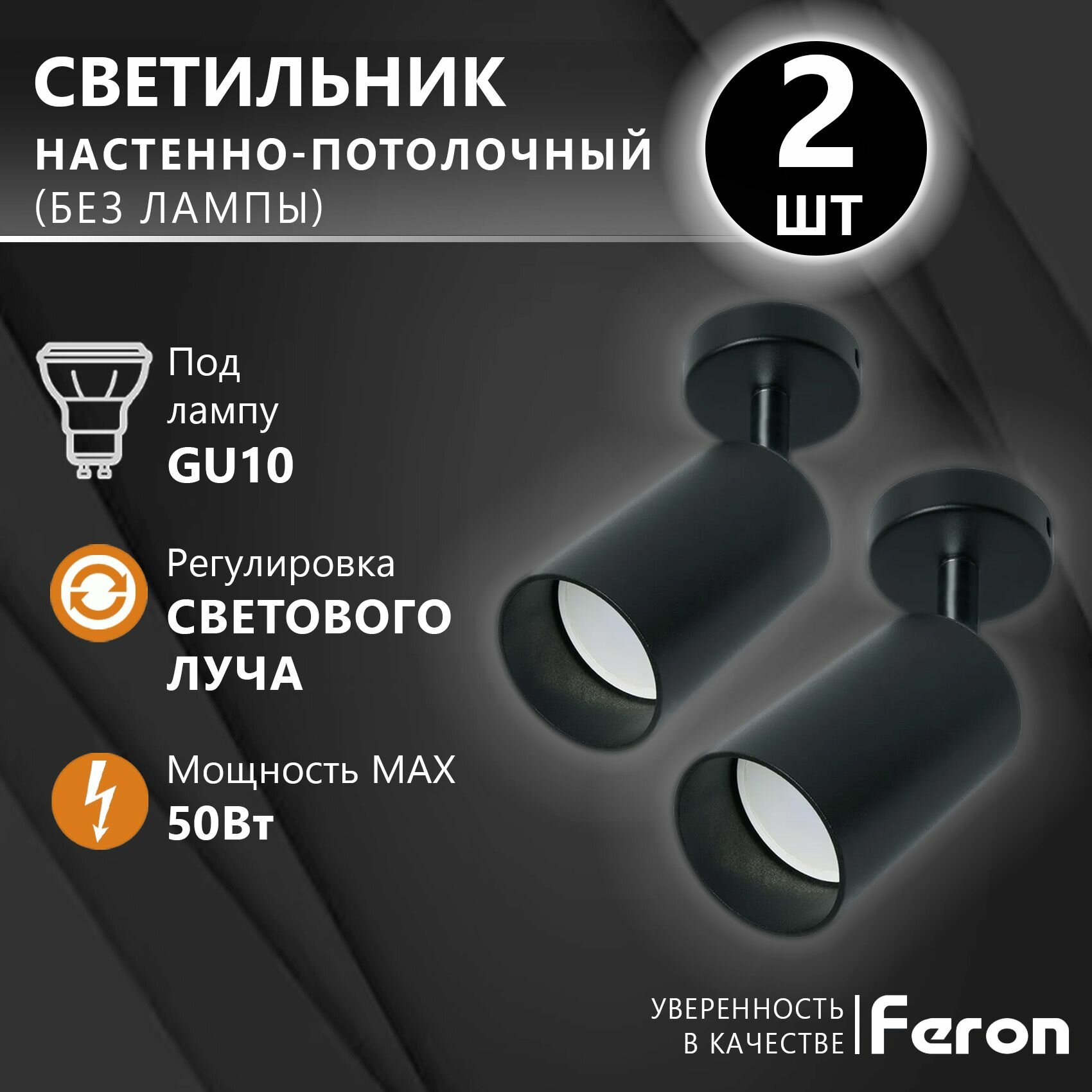 Купить Светильник потолочный настенный, спот Feron ML201 под лампу GU10, 50Вт, MR16, черный, 2 штуки