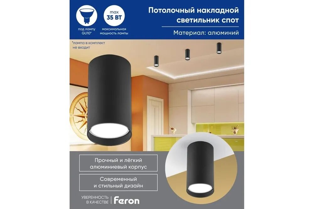 Светильник потолочный MR16 35W 230V, черный, ML176, Feron, 40510, 40510 интересное:
