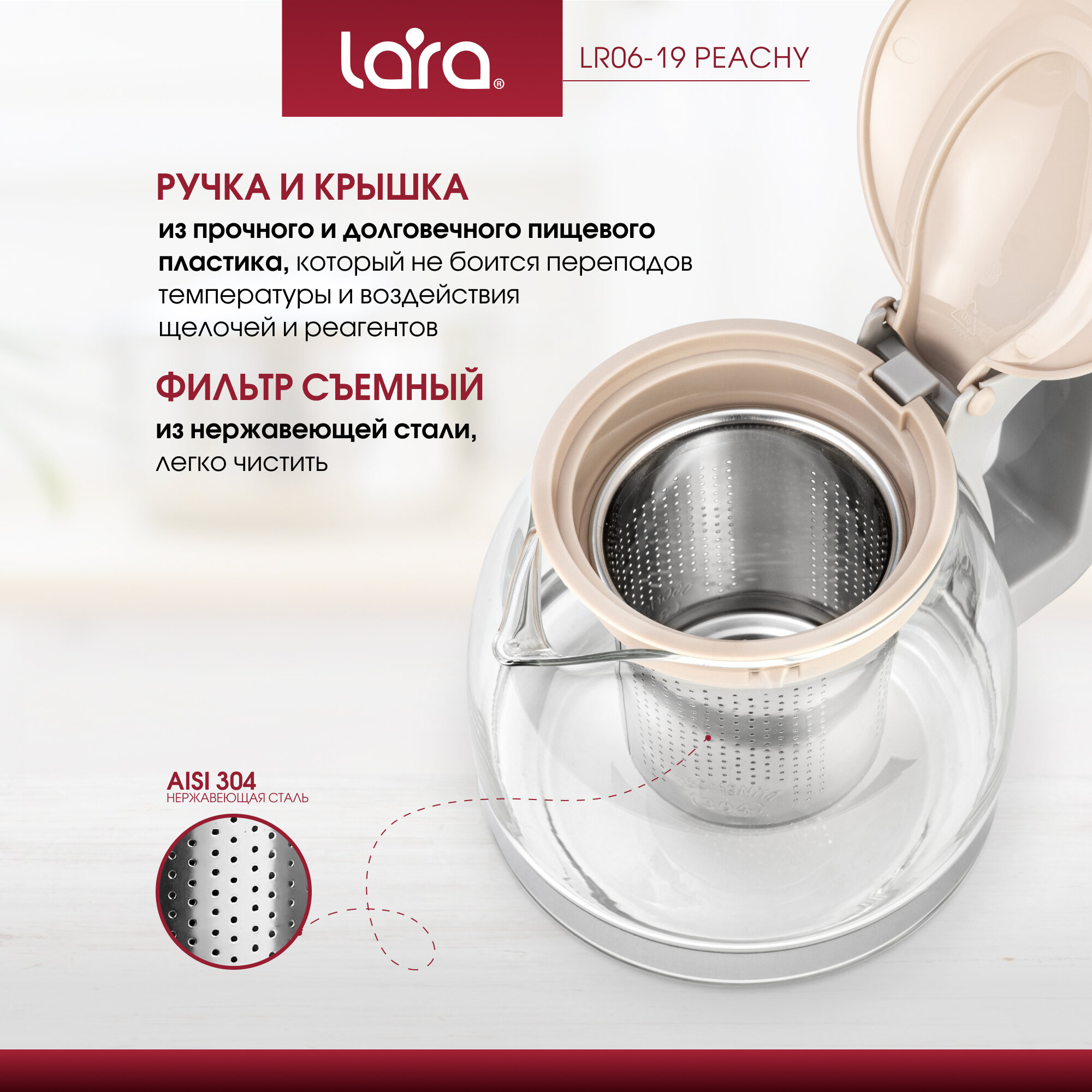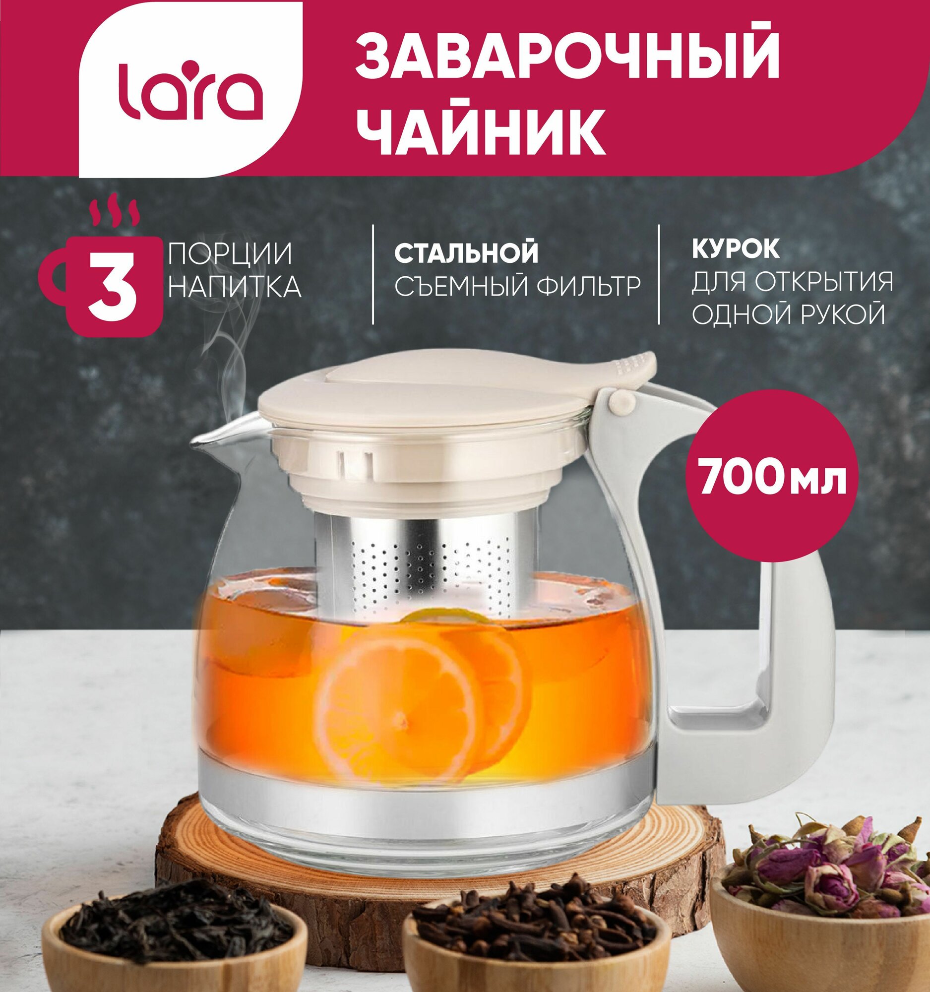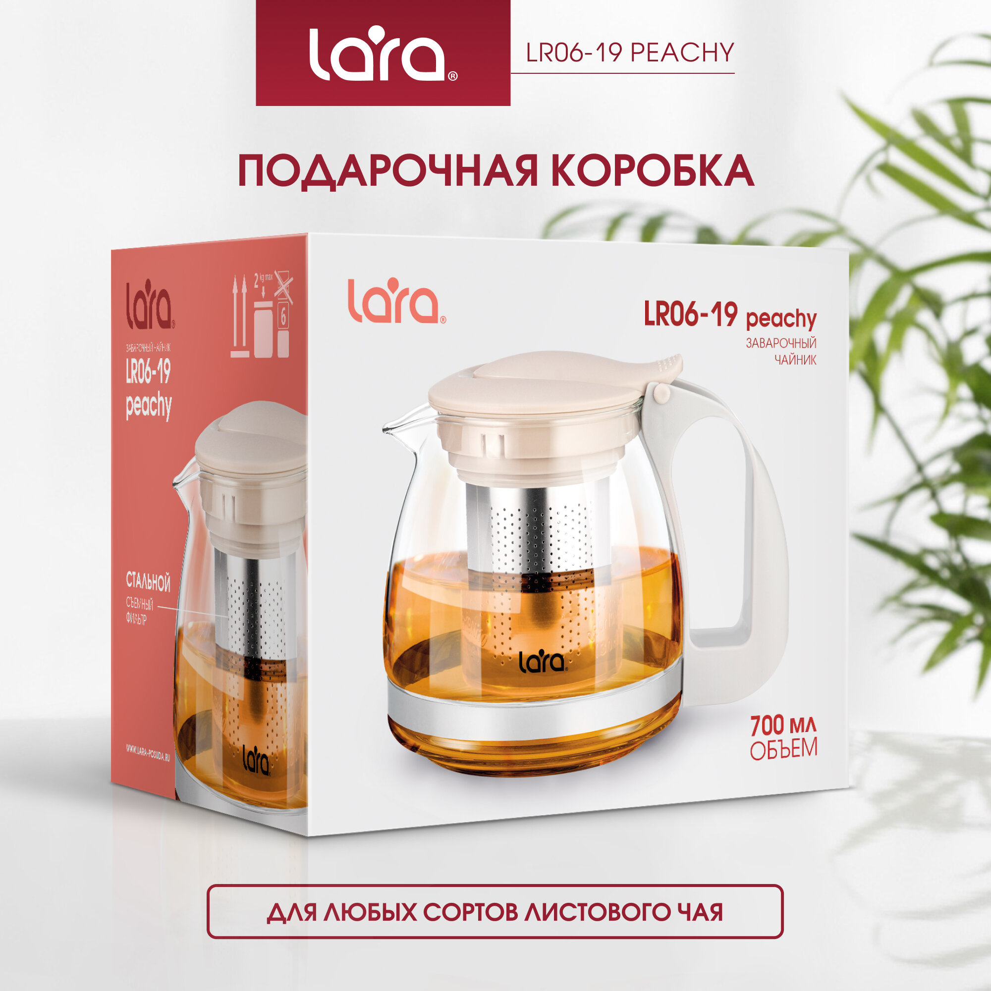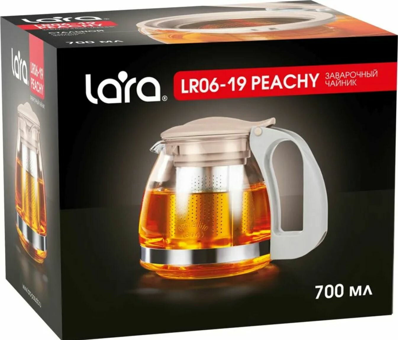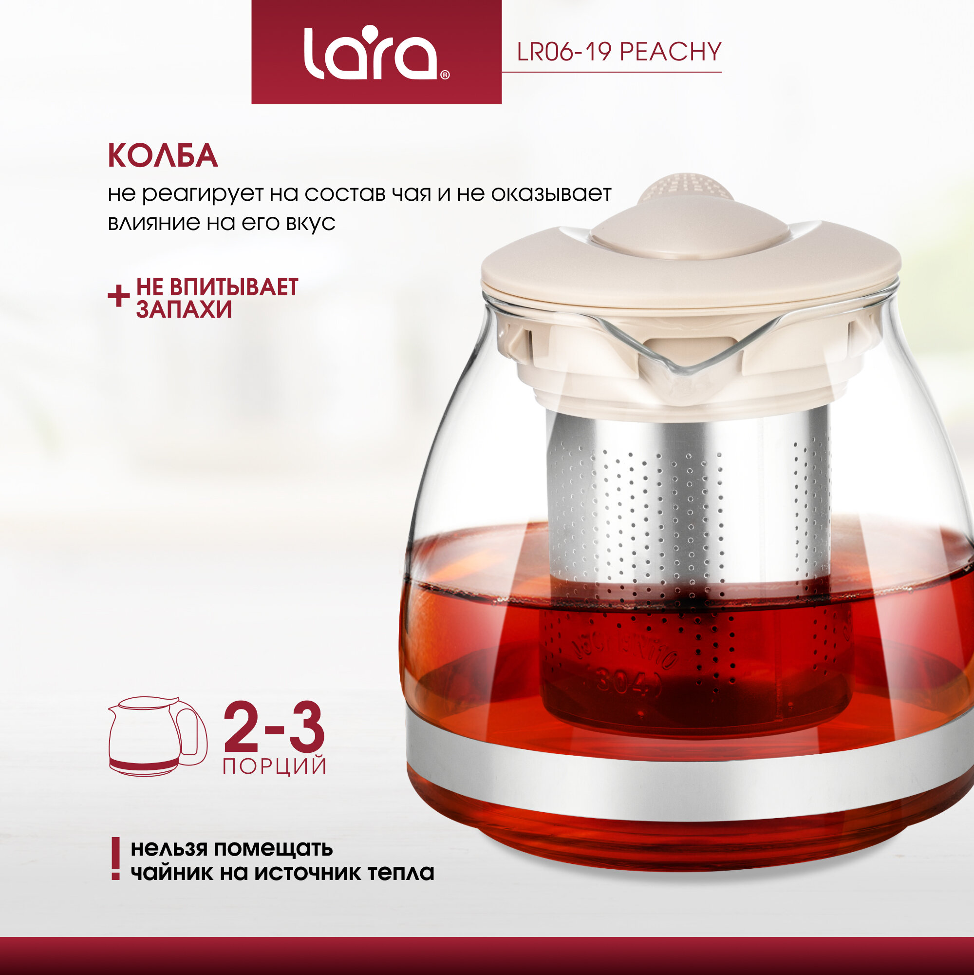Купить Чайник заварочный стеклянный LARA LR06-19 Peachy/ 0.7 л/ стальной фильтр/ подъем крышки