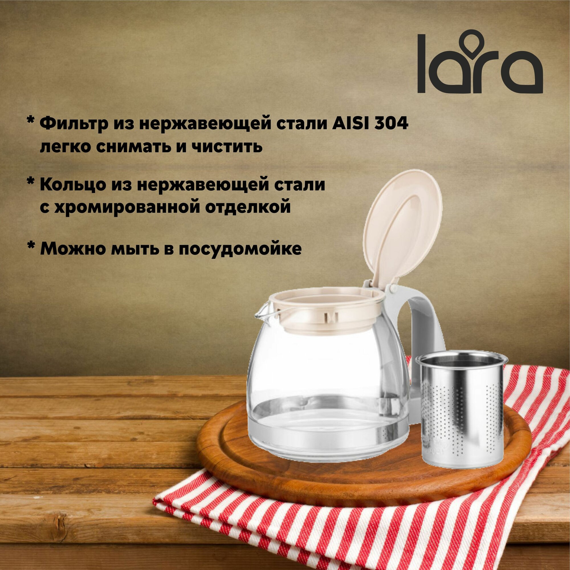 Чайник заварочный Lara, LR06-12, боросиликатное стекло, 1л