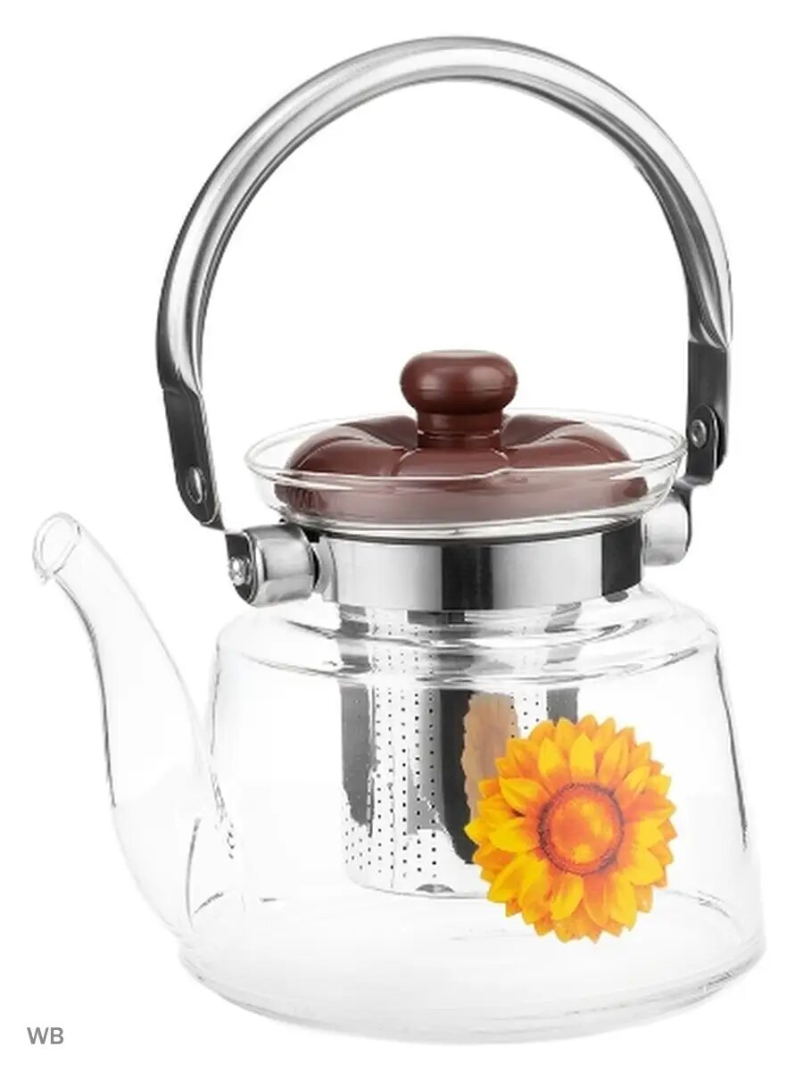 Чайник заварочный стеклянный LR06-12/ 1000мл/стальной фильтр