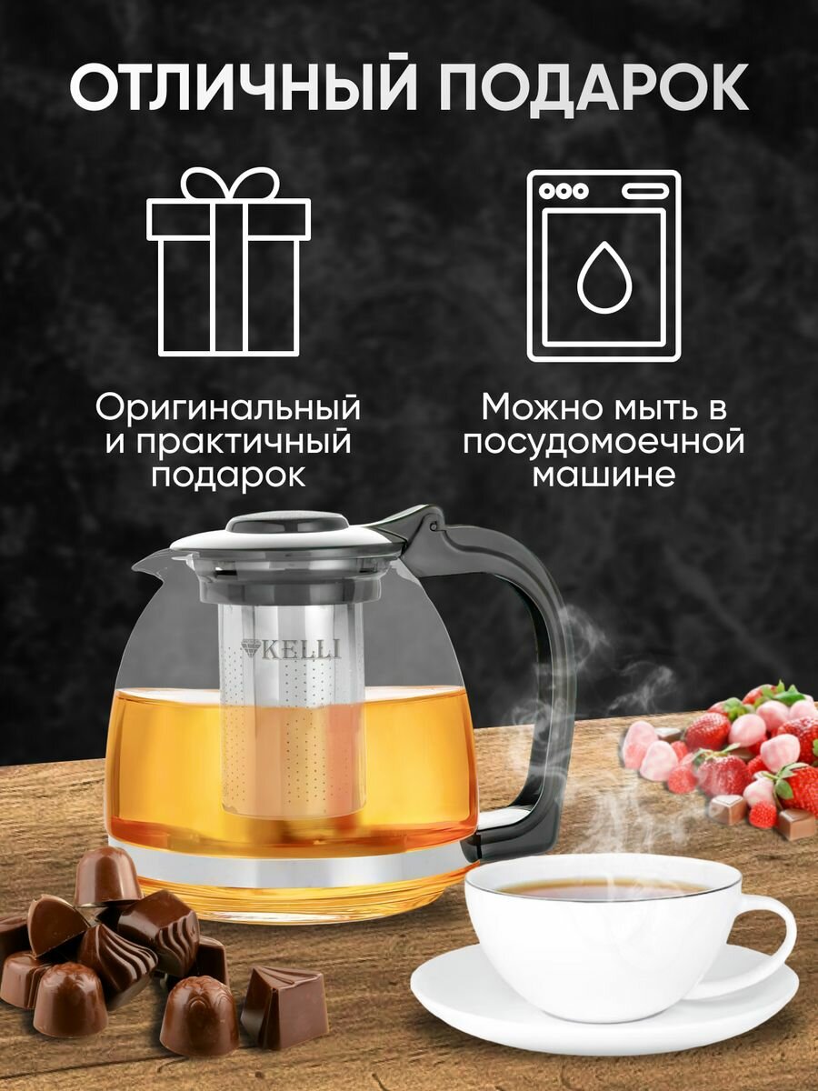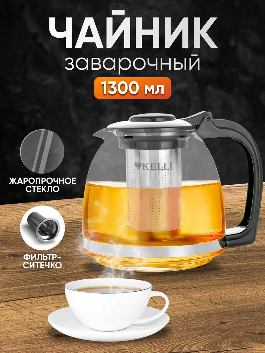Заварочный стеклянный чайник Kelli с ситом, 1,3 л, прозрачный интересное: