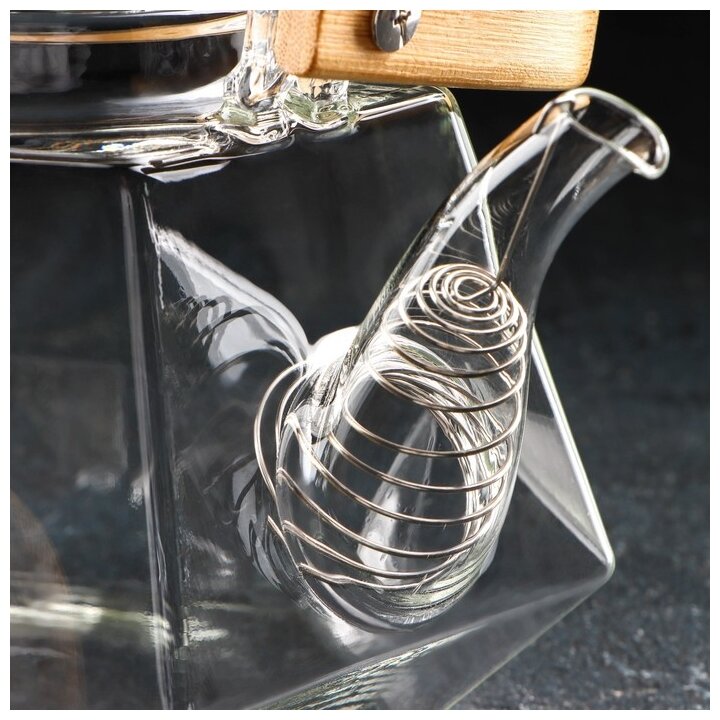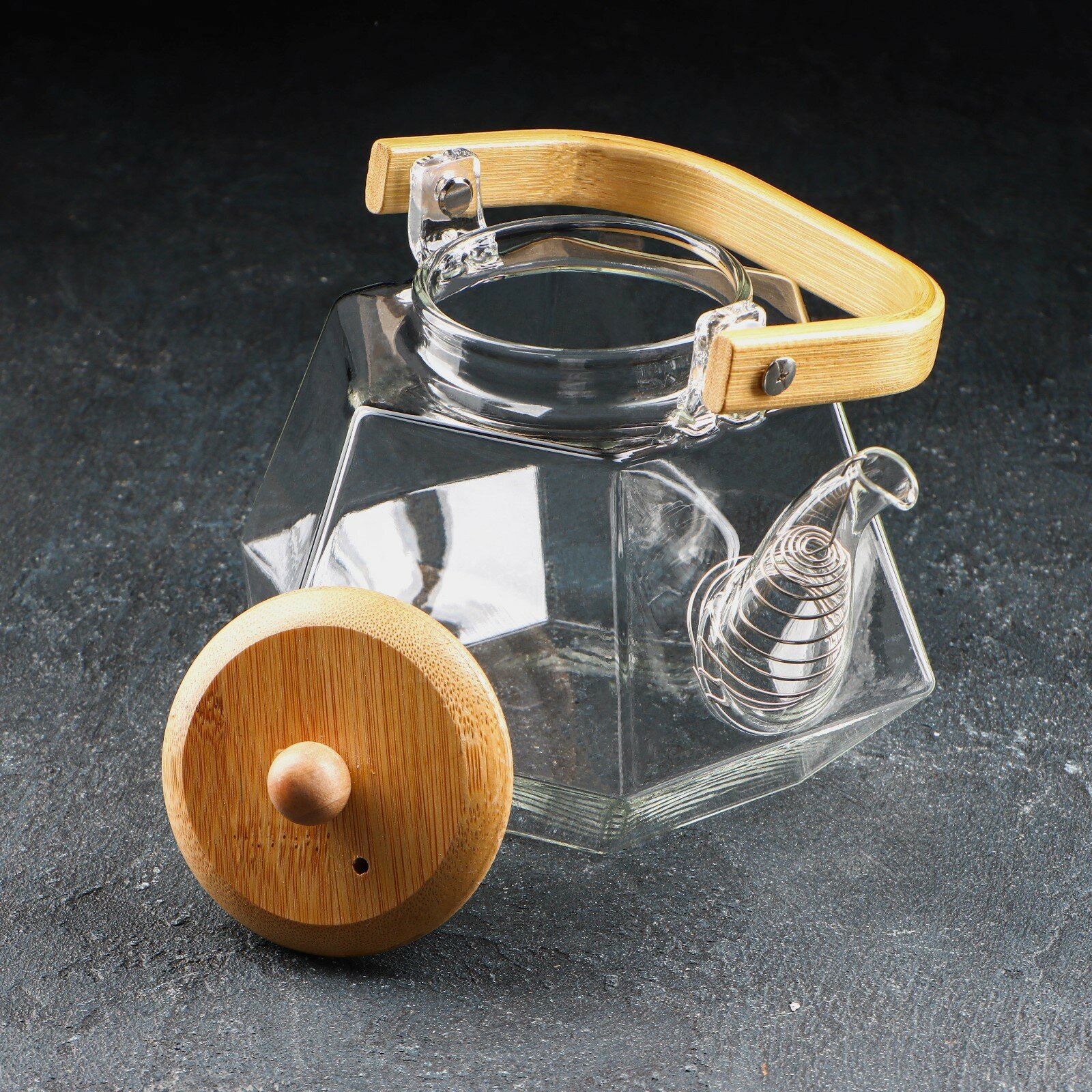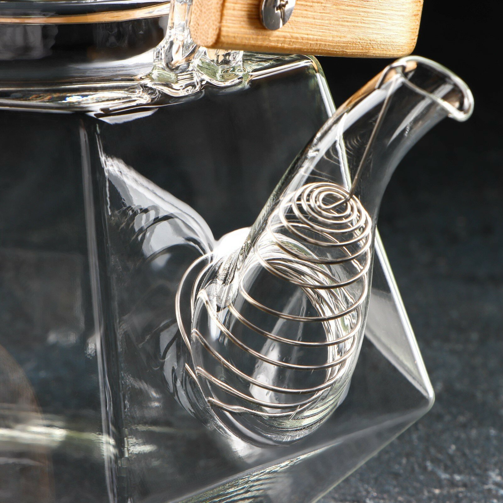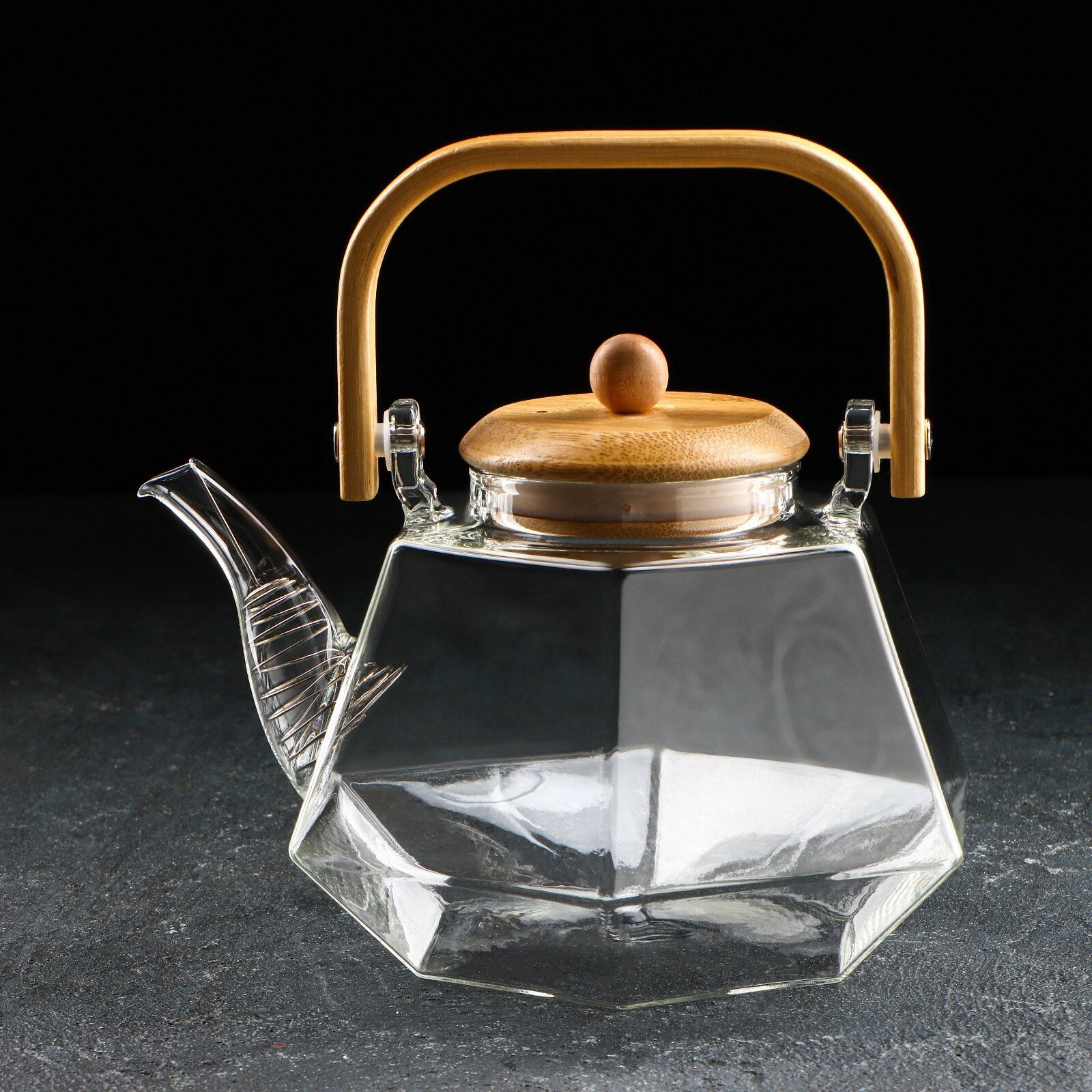 Чайник стеклянный заварочный с бамбуковой крышкой и металлическим ситом «Октогон», 800 мл