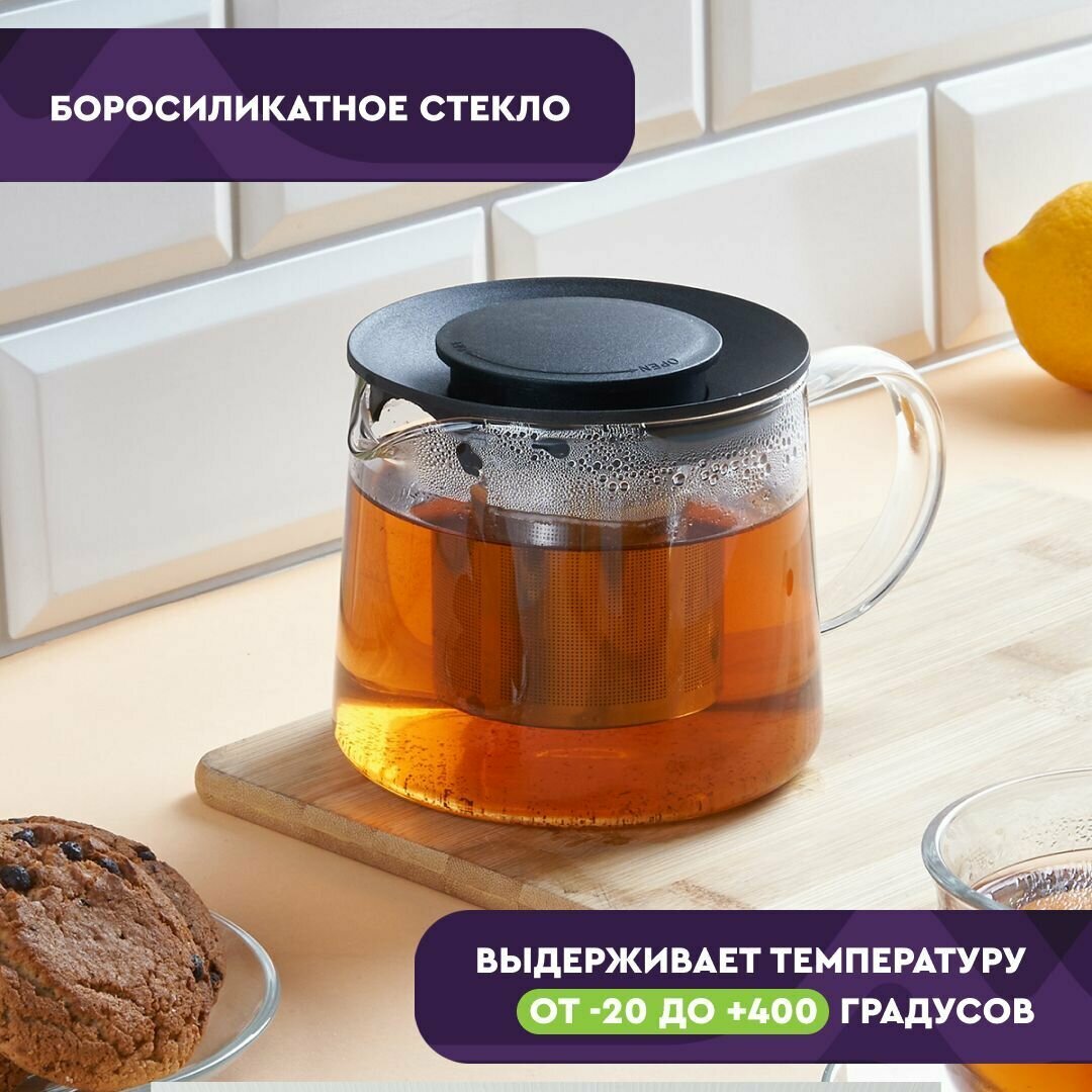 Чайник заварочный круглый 600мл Eley, стеклянный с ситечком, жаростойкий интересное: